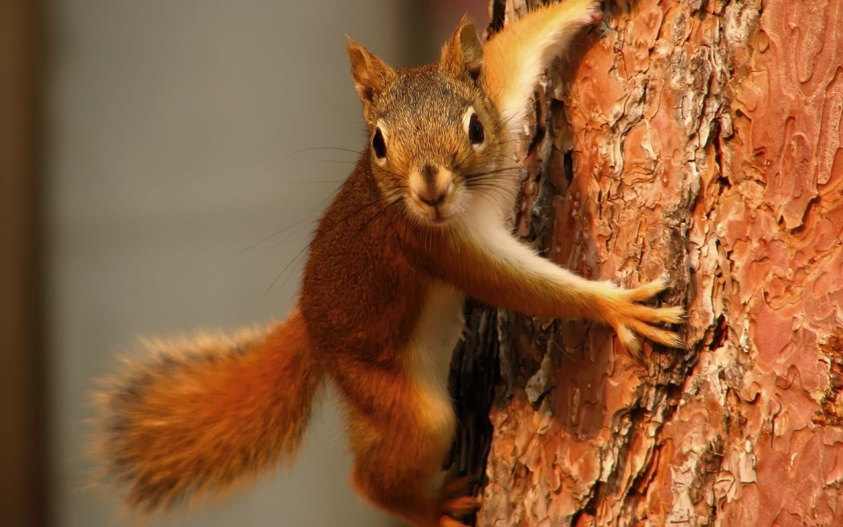 Vahşi doğada bir sincap, bir dalın kenarında oturuyor
