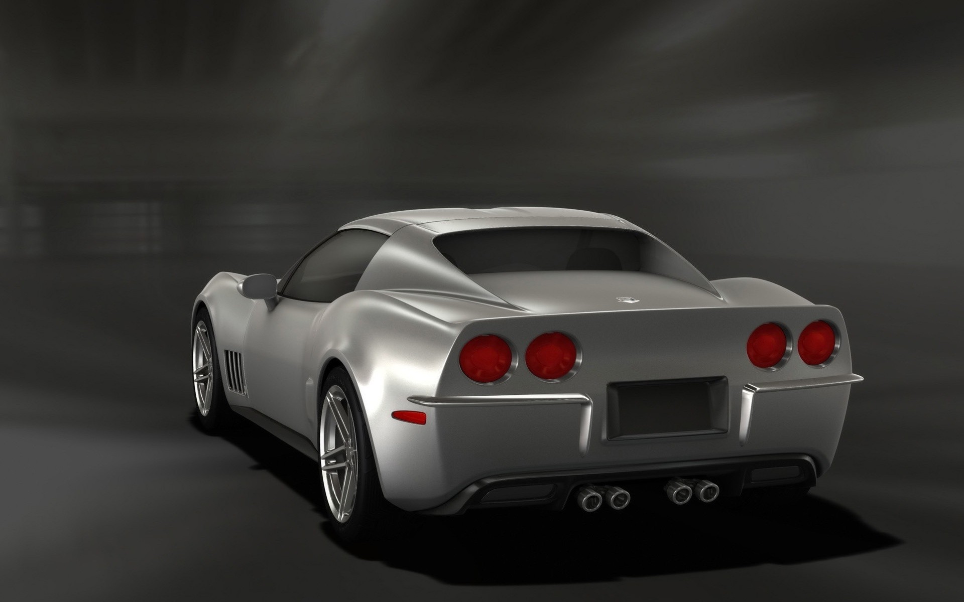 Koyu arka plana karşı gri spor araba arkadan görünüm