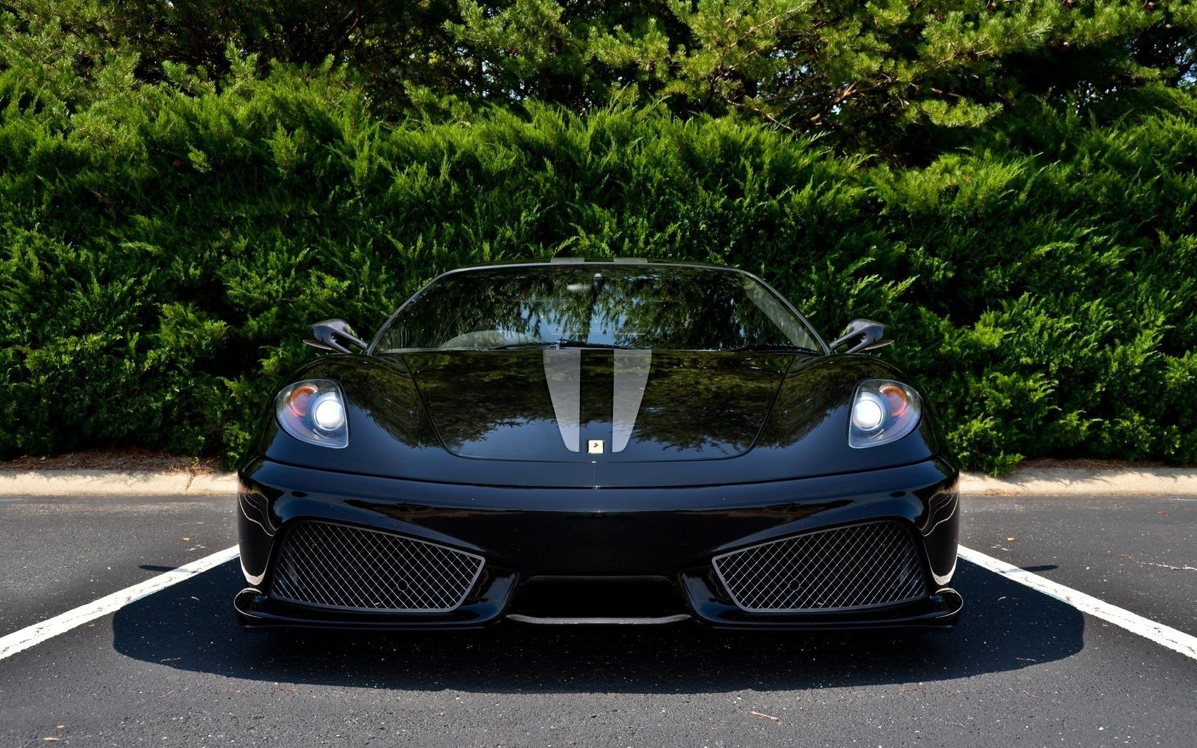 Yeşilliklerin zeminine karşı otoparkta sportif siyah araba