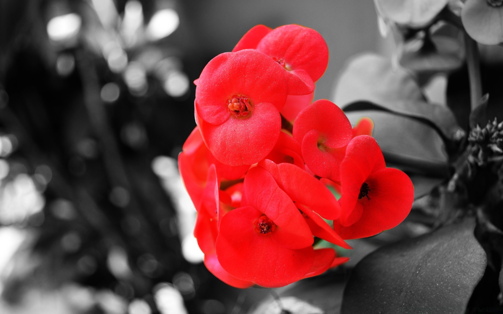 Siyah beyaz zemin üzerine kırmızı çiçek