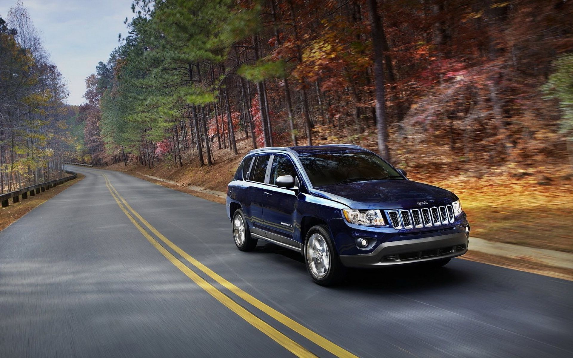 Sonbahar güzelliğinin arka planına karşı siyah SUV