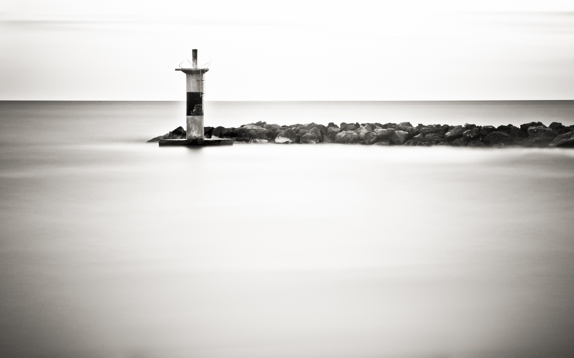 Deniz fenerinin siyah beyaz fotoğrafı