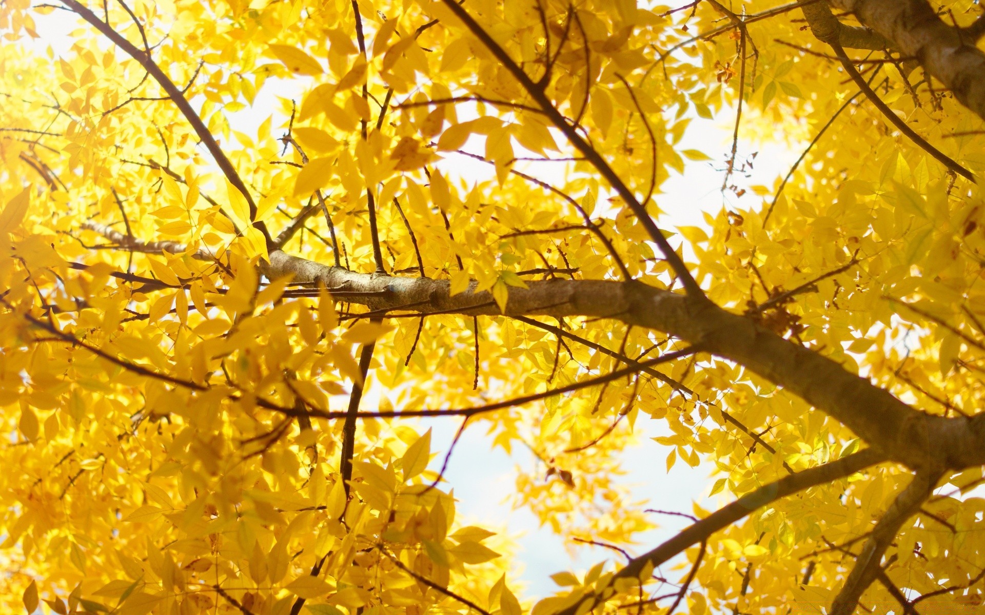 Sarı sonbahar yaprakları ile gökyüzü