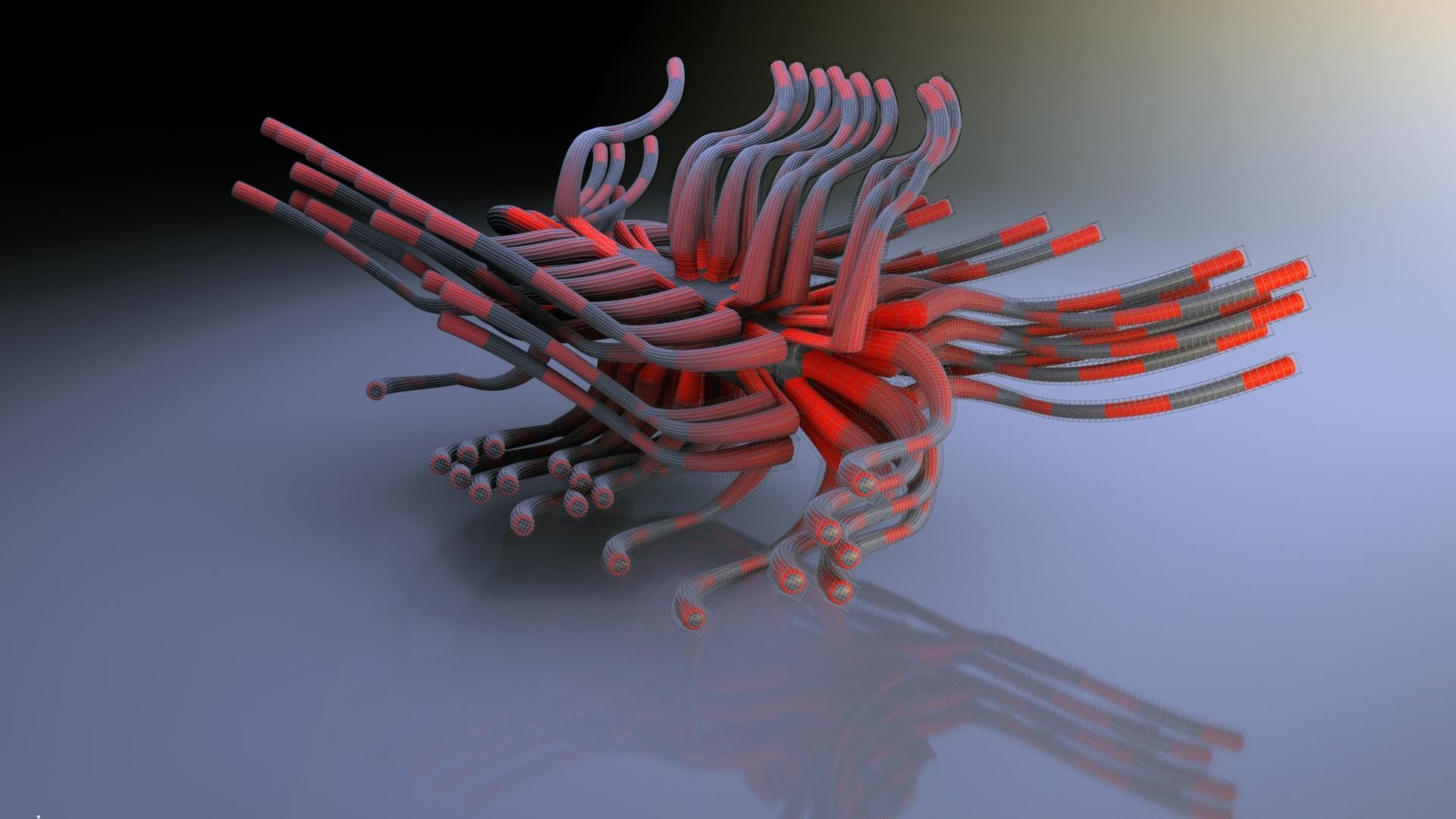 Şafağın arka planında su ve kayaların 3d grafikleri
