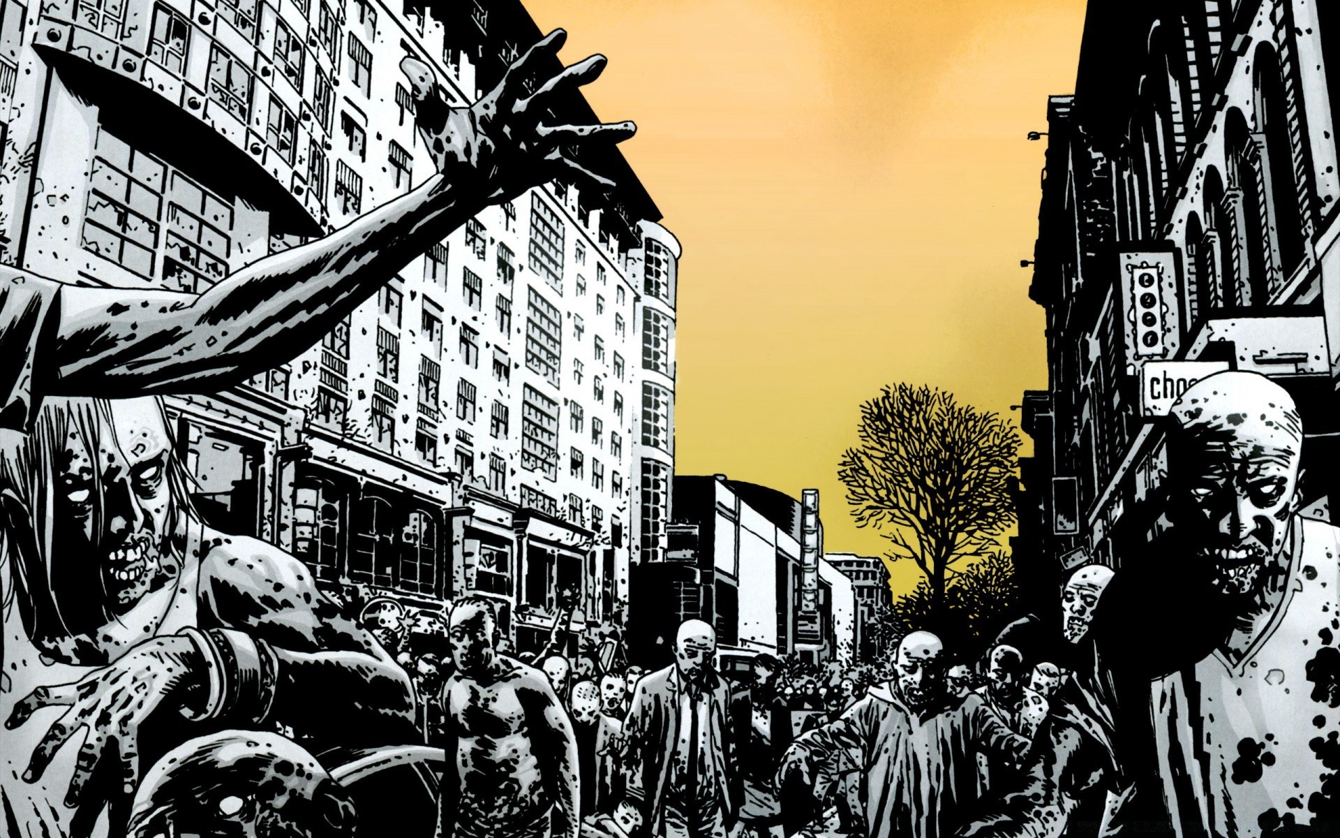 Şehirdeki zombi kalabalığının grafik görüntüsü