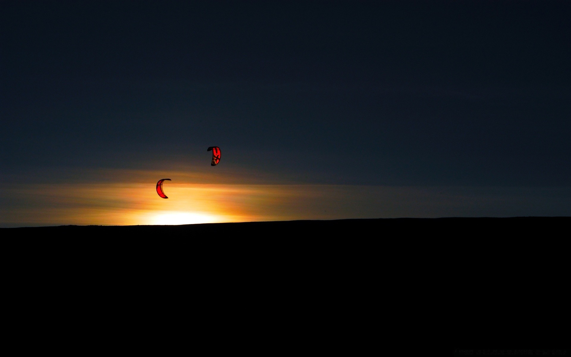 Yamaç paraşütçüleri gün batımında gökyüzünde yüksekte