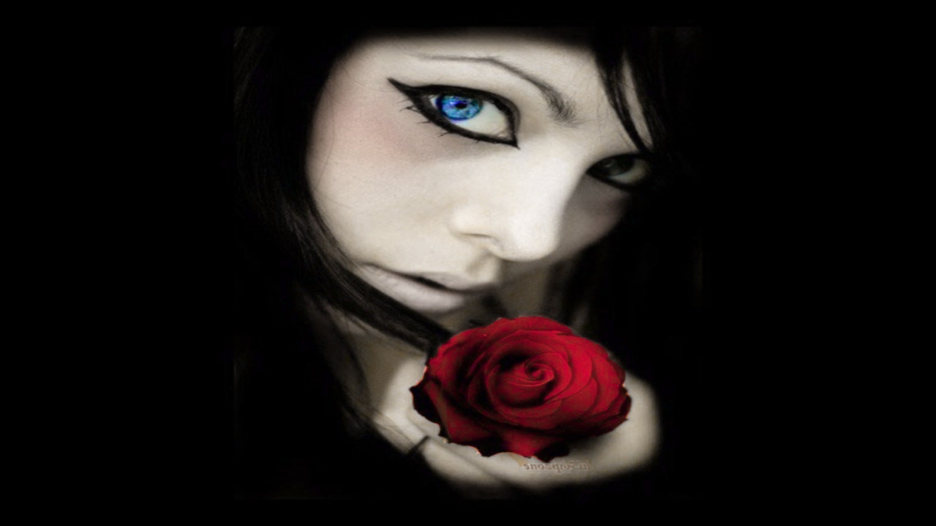 Elinde kırmızı bir gülle esmer bir kızın portresi