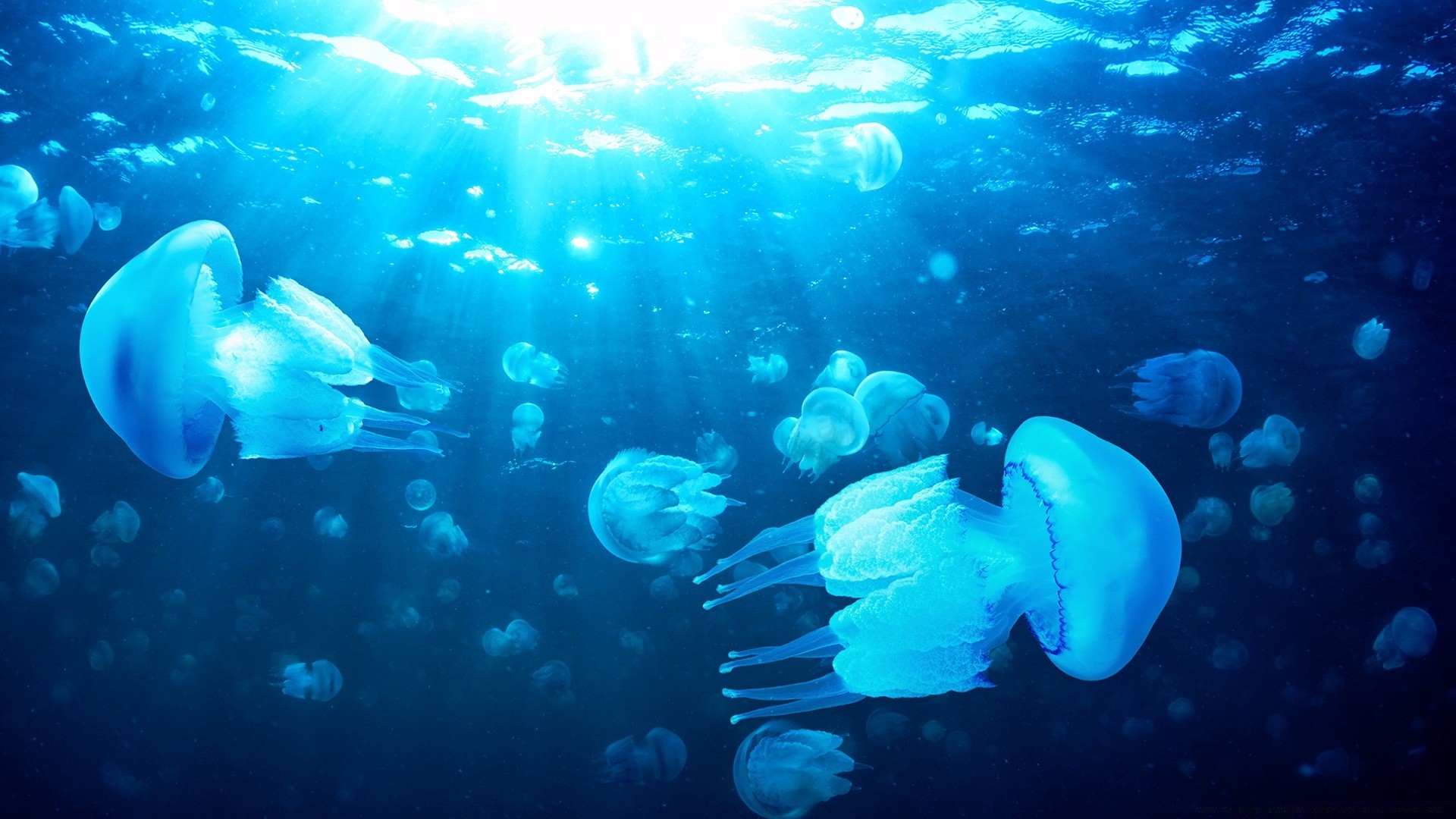 Denizanası mavi suda yüzüyor