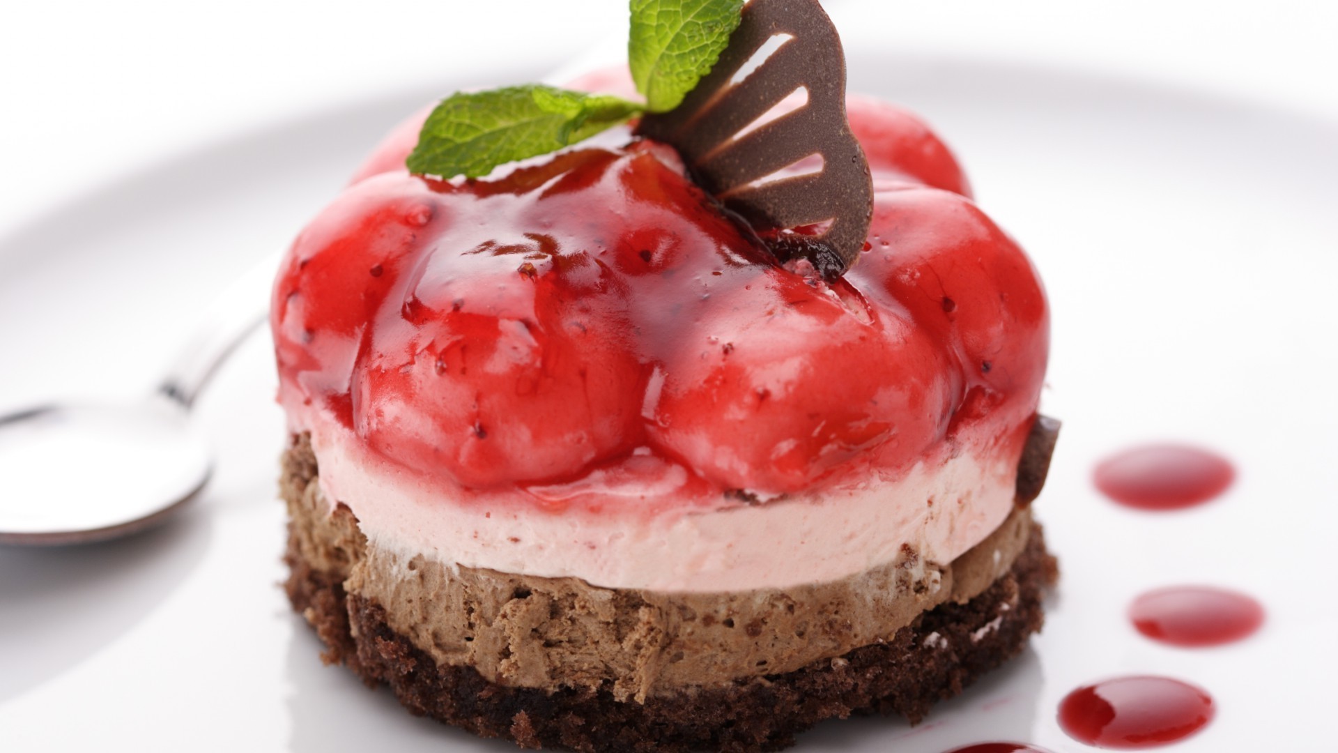 Çilekli ve çikolatalı bisküvili sulu tatlı