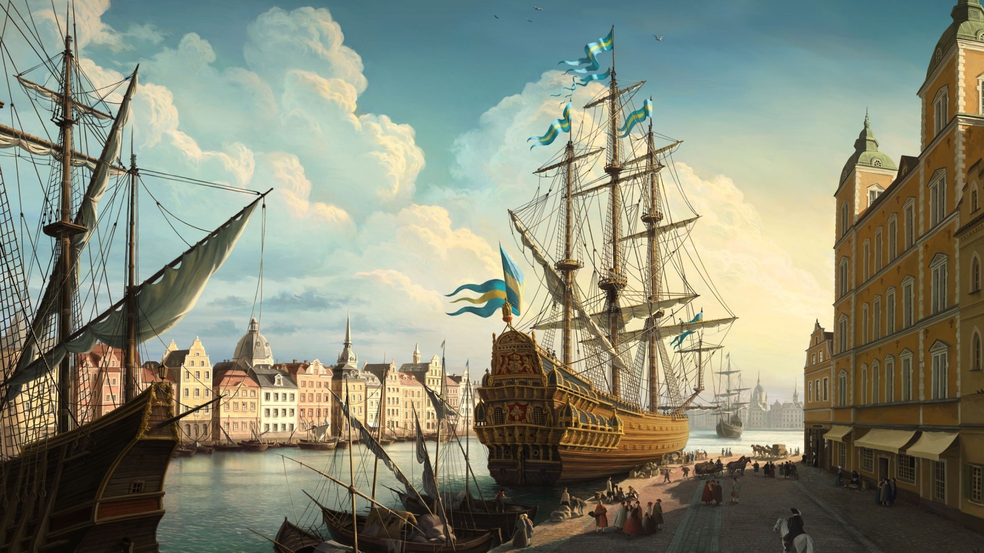 Yelkenli tekneyle deniz kenarında şehrin muhteşem dekorasyonu