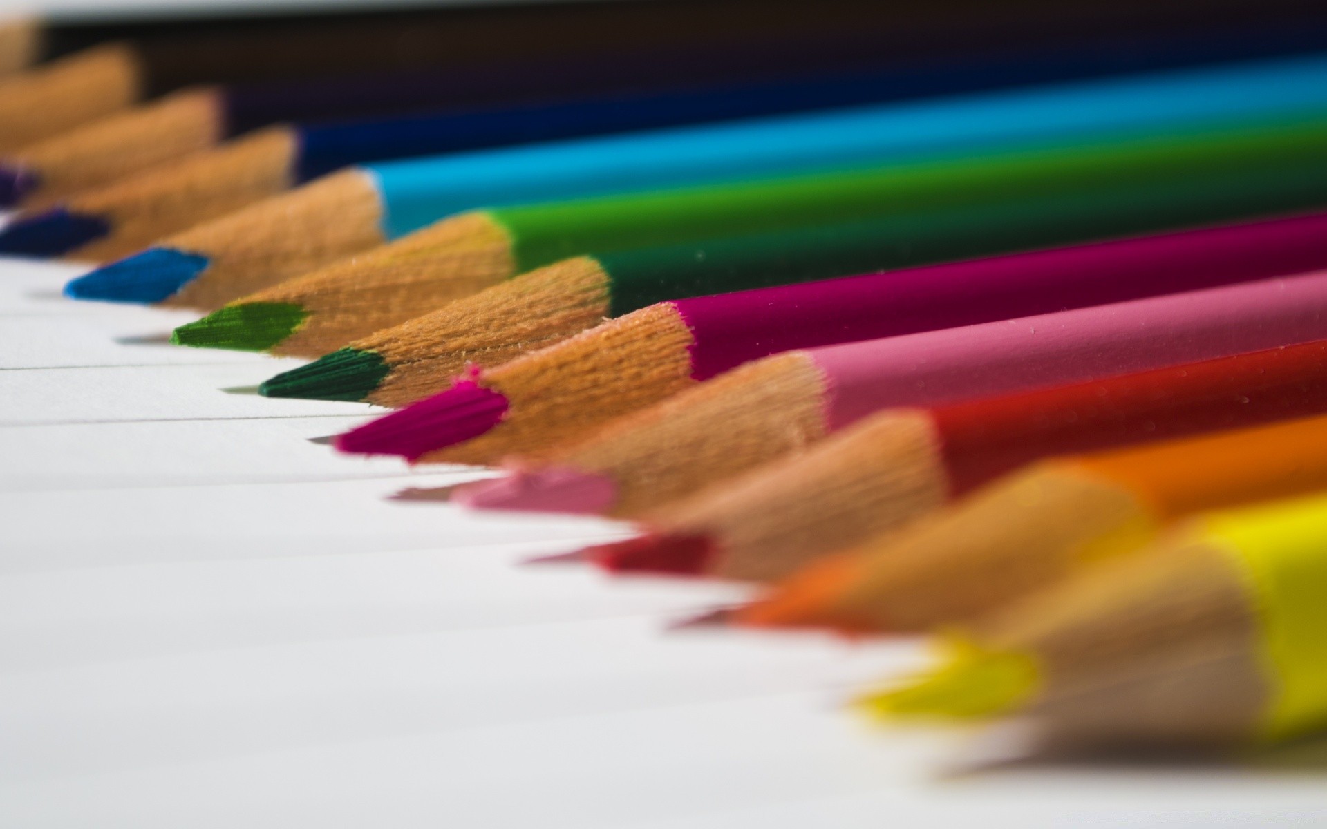 Daire içine yerleştirilmiş keskin renkli kalemler