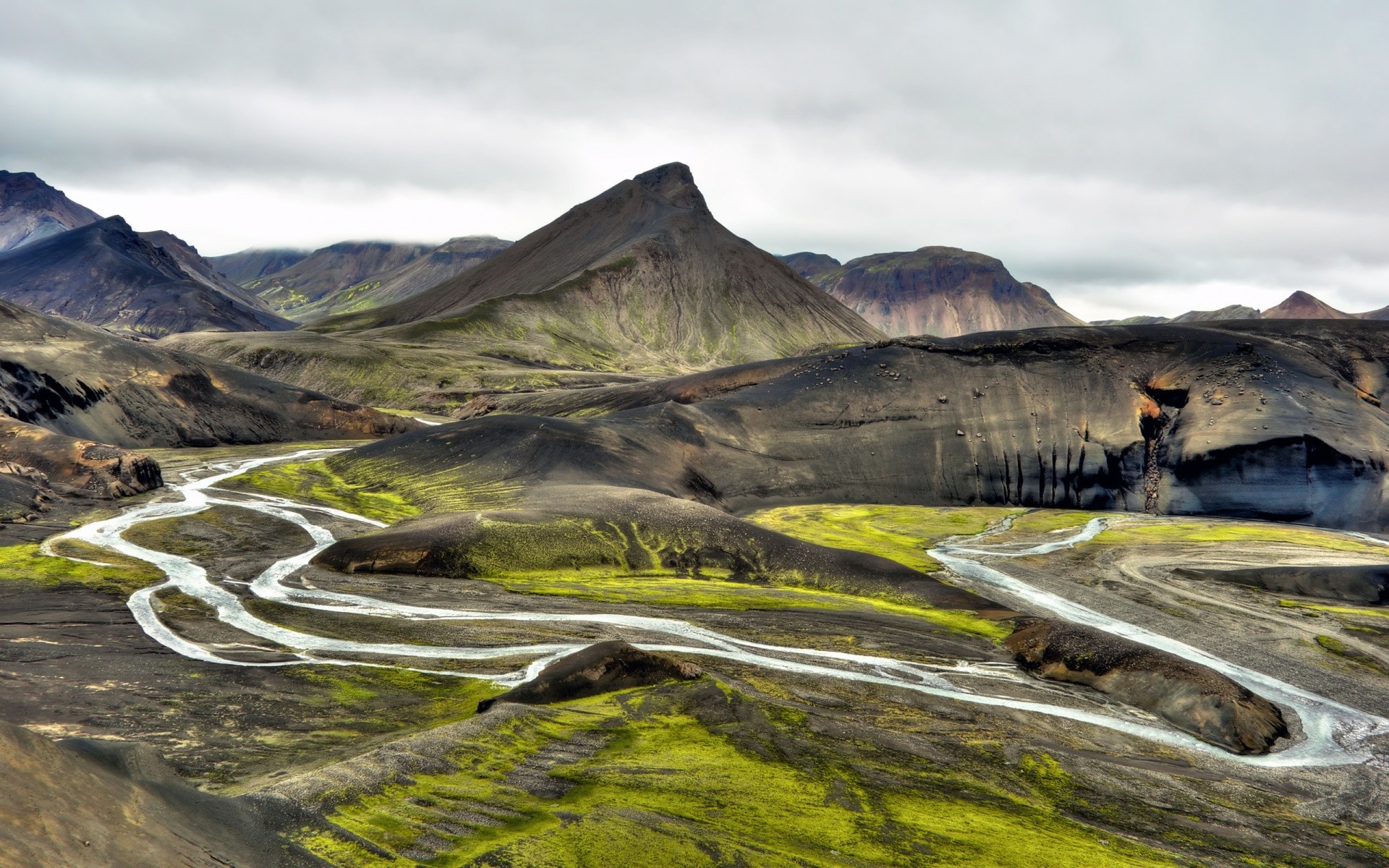 Yeşil tepelerden akan dolambaçlı bir nehir