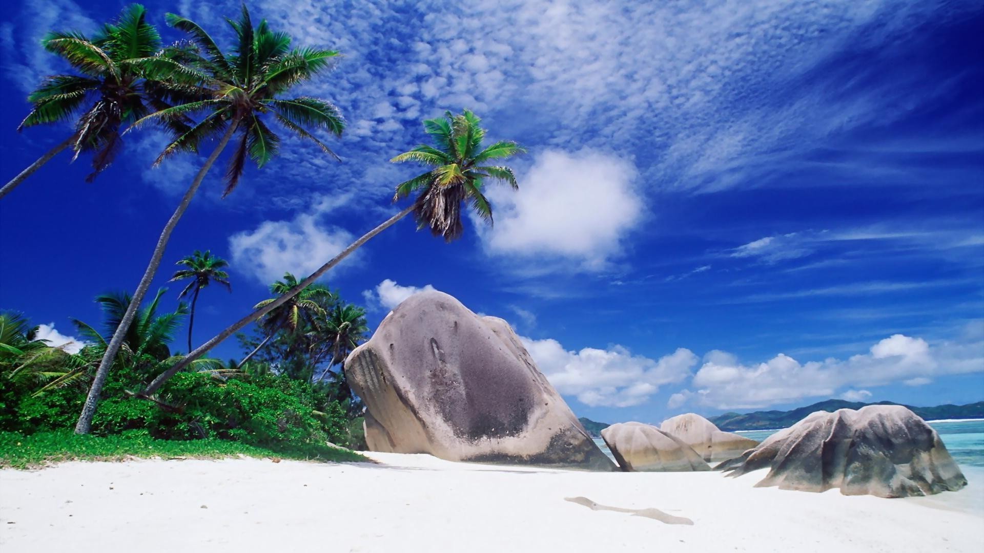 Okyanusun yakınındaki palmiye ağaçlarının altındaki plajda doğa