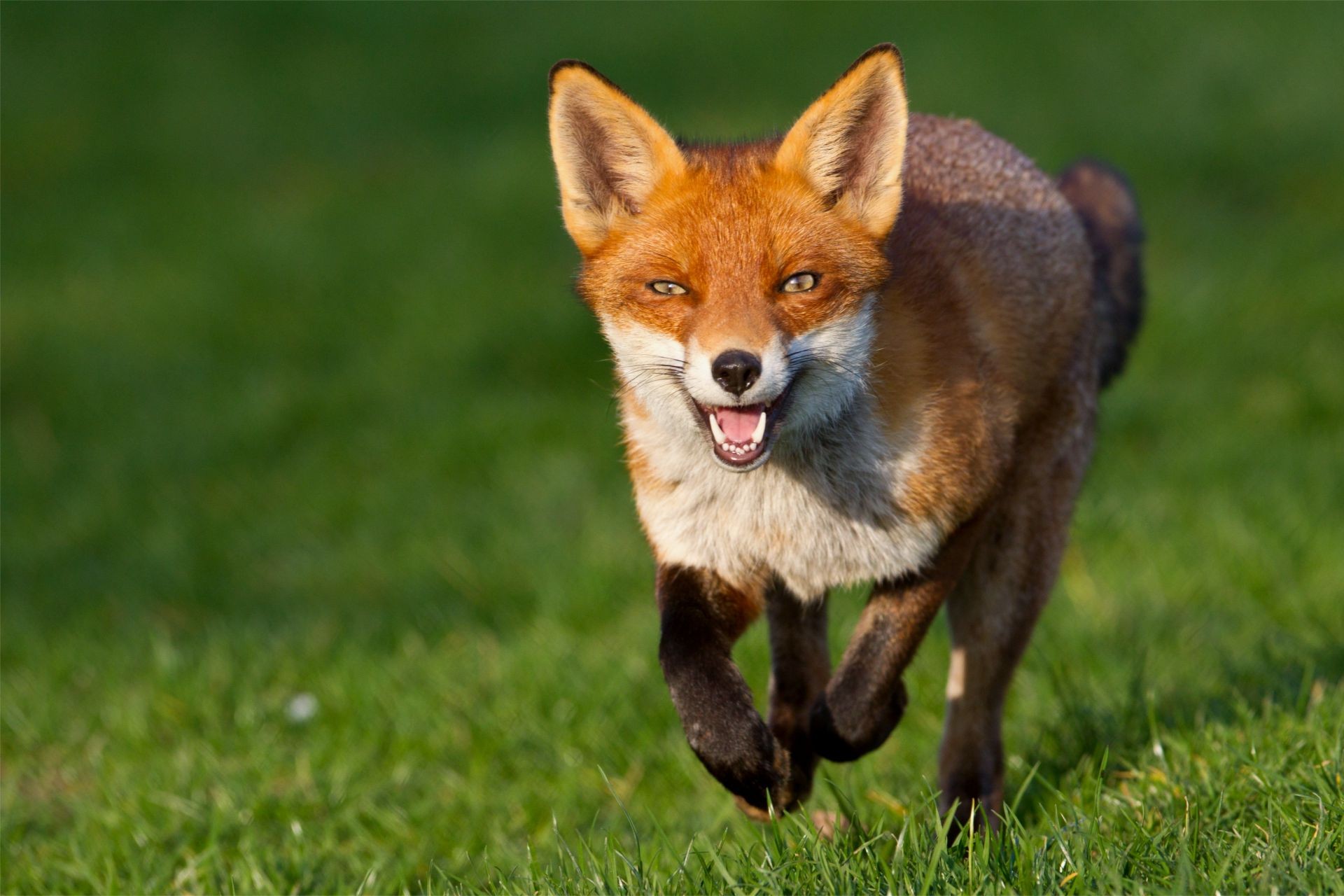 Kızıl saçlı tilki otların üzerinde koşuyor