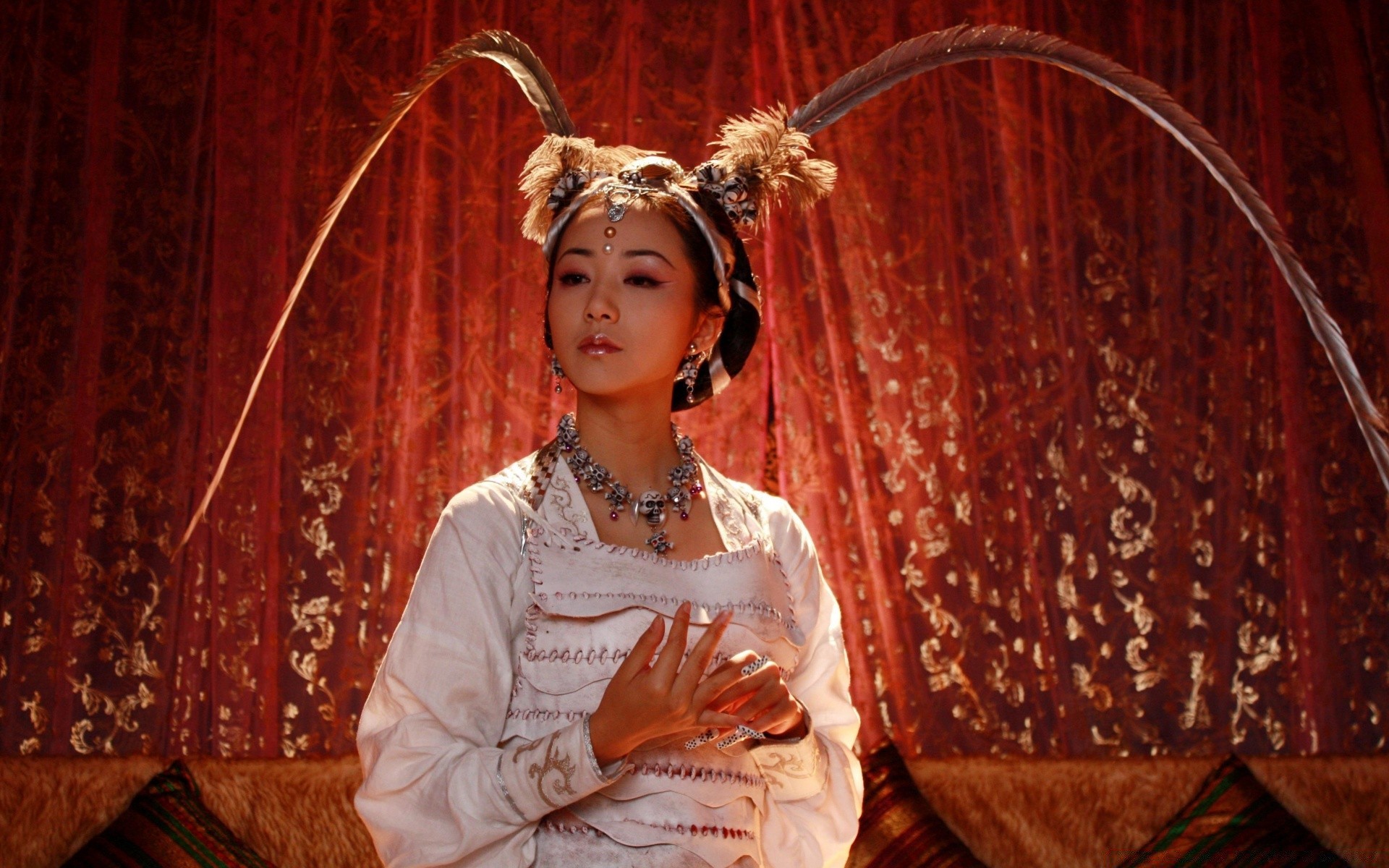 Geleneğe göre giyinmesi gereken kıyafetler giymiş bir kadın