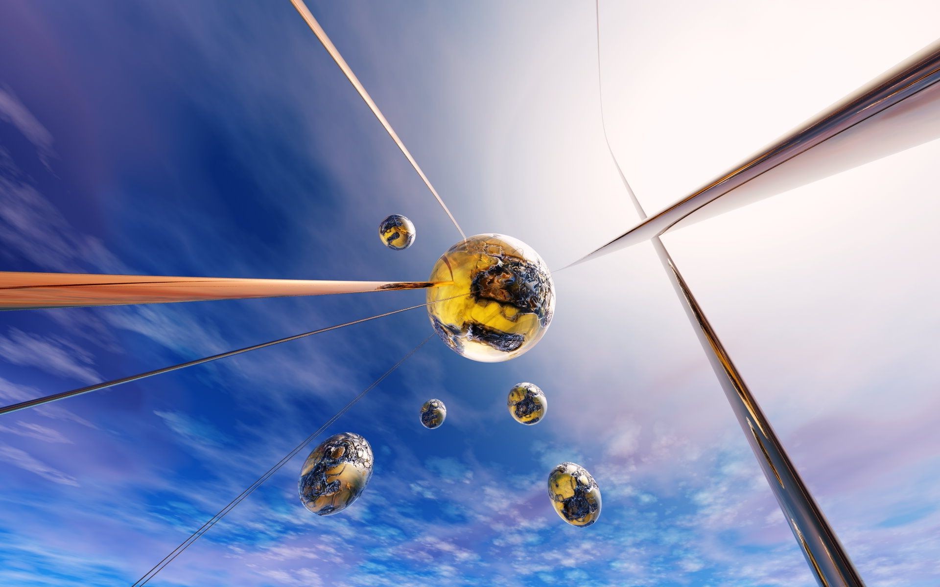 Küçük cam toplarda birinin galaksisi yansıtılıyor