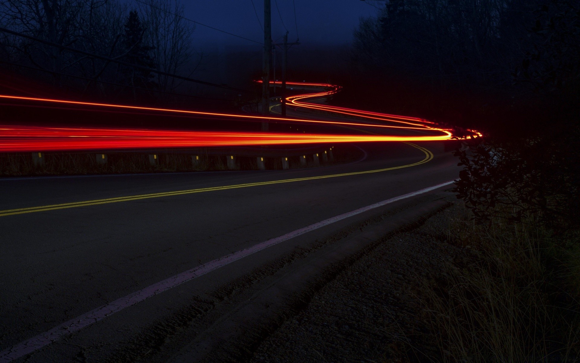 Gün batımına giden köprü. Gece nehrinde yansıma