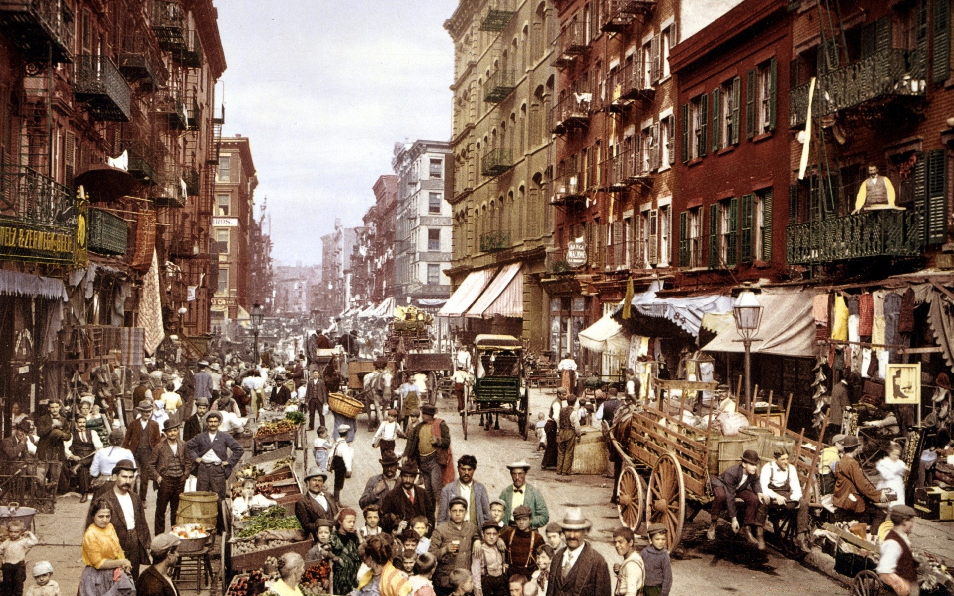 Çizgi film resmi. Şehrin arka planındaki insanlar