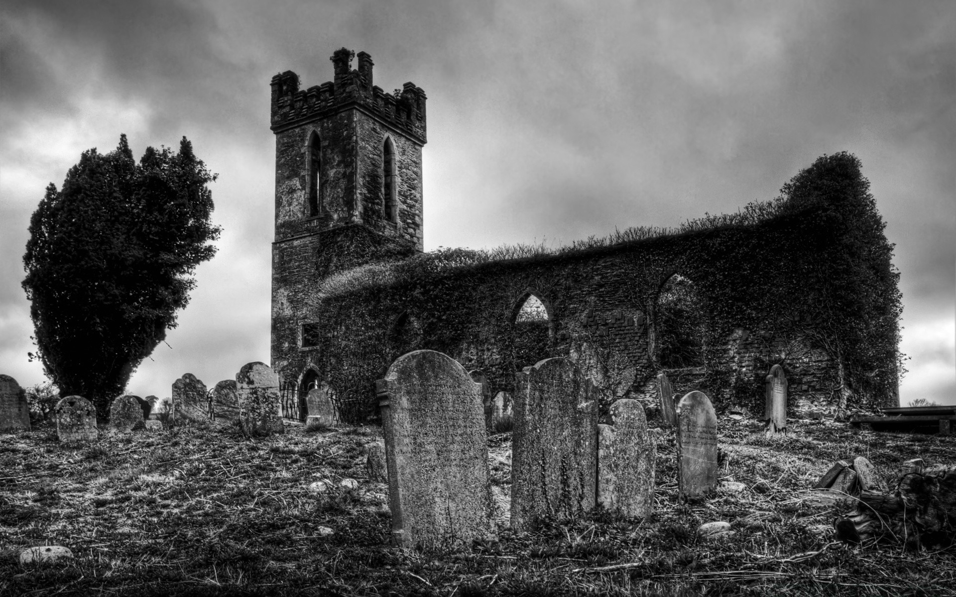 Eski bir kalenin siyah ve beyaz görüntüsü