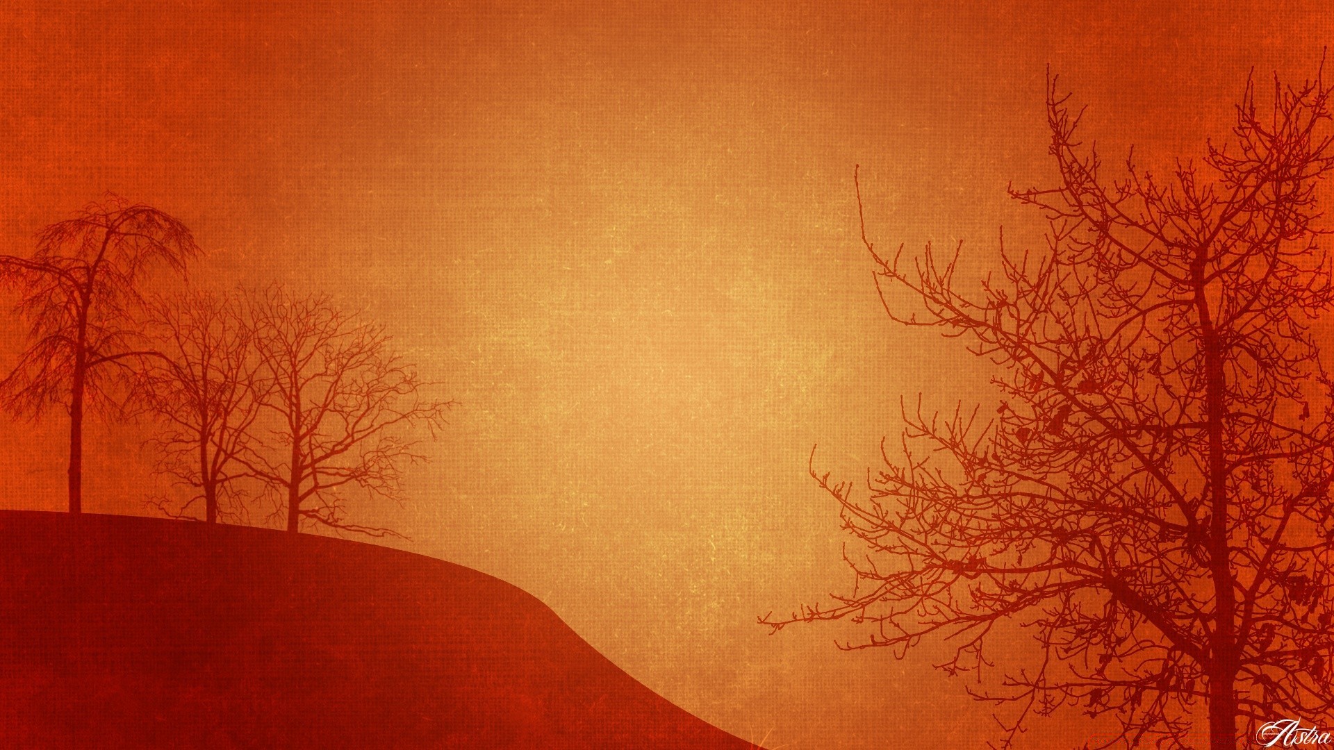 Manzara. Vintage. Ağaçlar. Turuncu arka plan