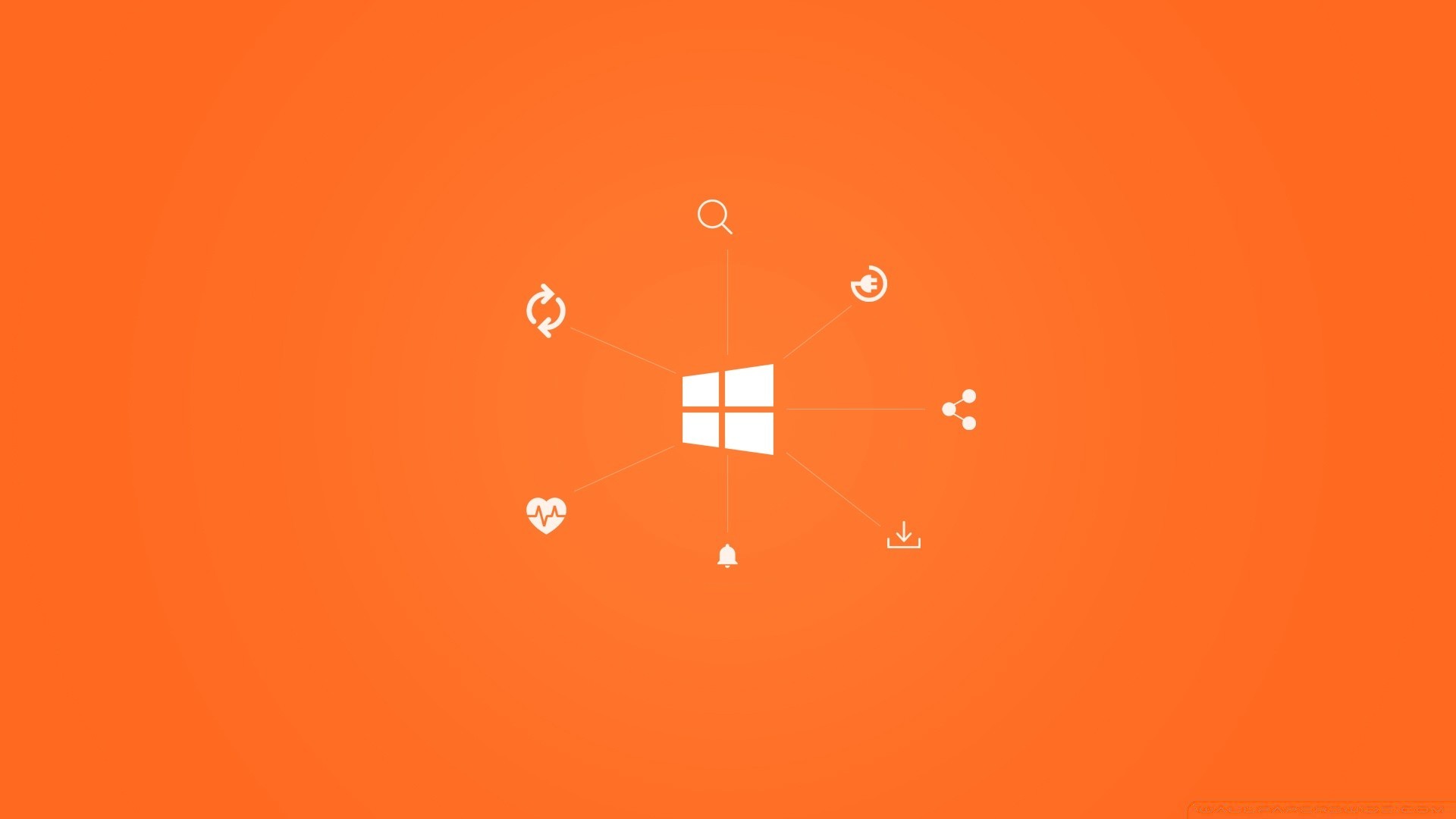Windows simgesi turuncu bir arka plan üzerinde beyazdır