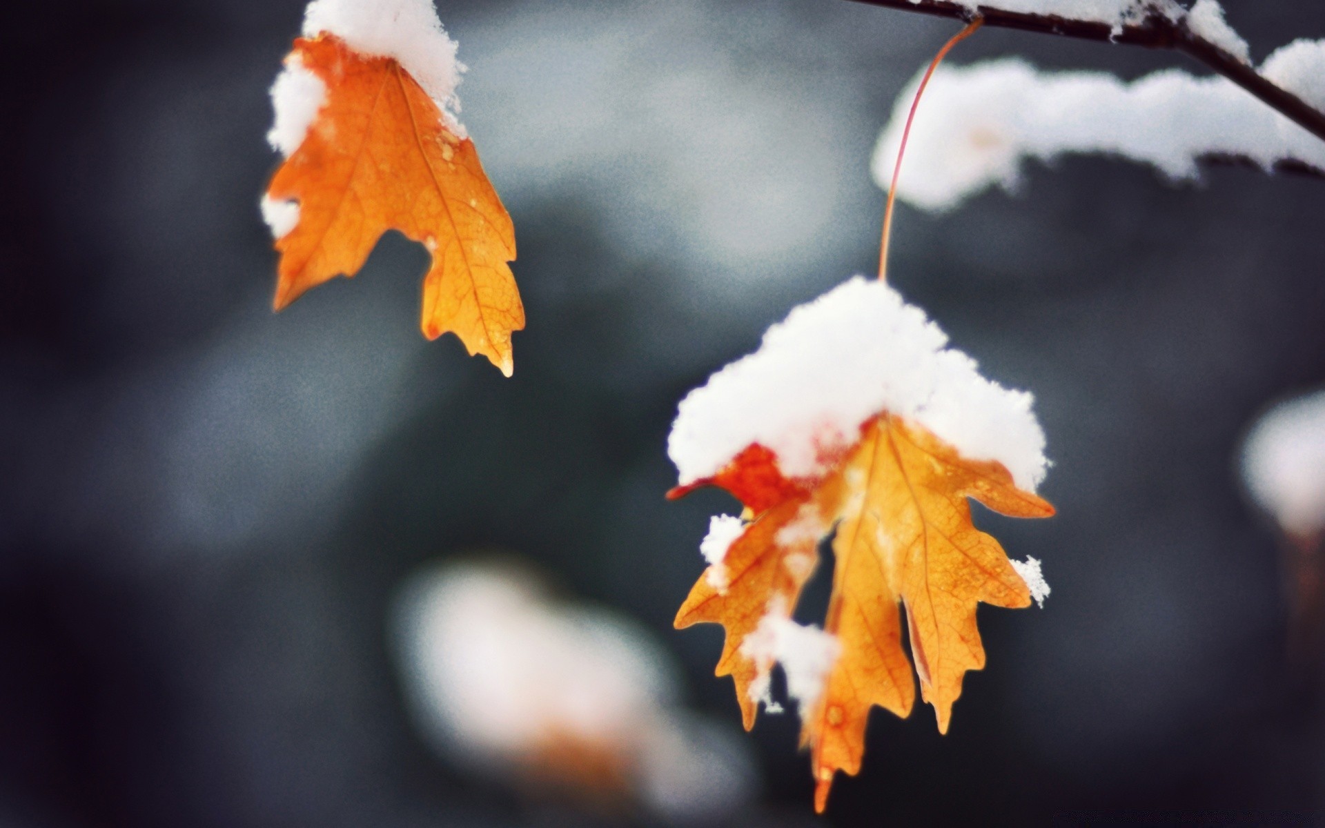 Kar altında sonbahar Turuncu Akçaağaç Yaprakları