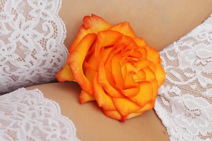 Turuncu gül ve beyaz keten