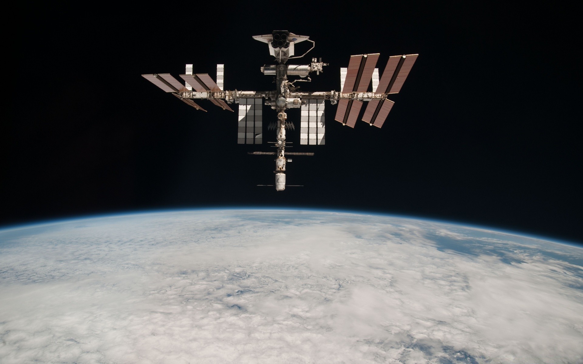 Dünya'nın arka planına karşı uzayda bir uzay gemisi