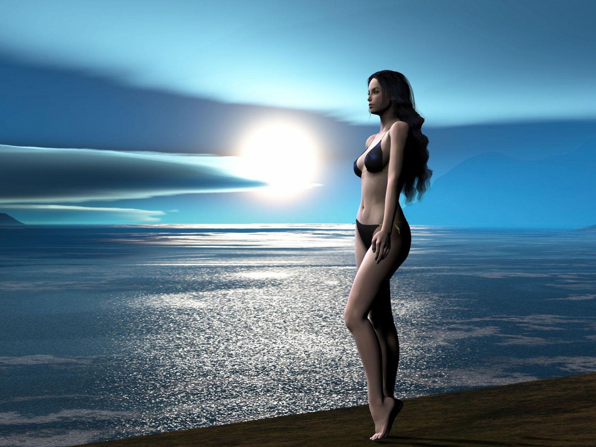 Kız denizde yüzmek istiyor