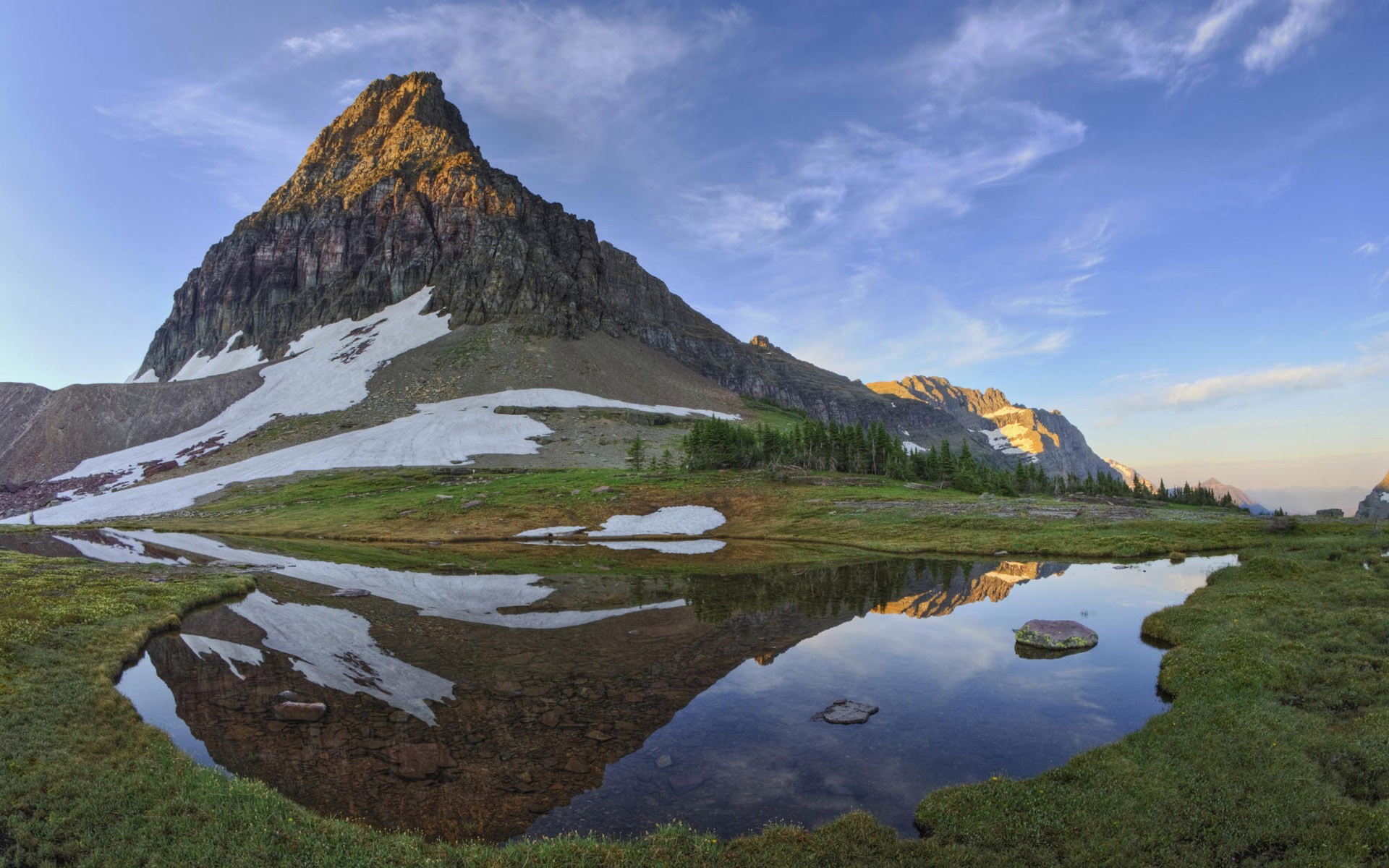 Gölde dağlar ve gökyüzü yansıtılıyor