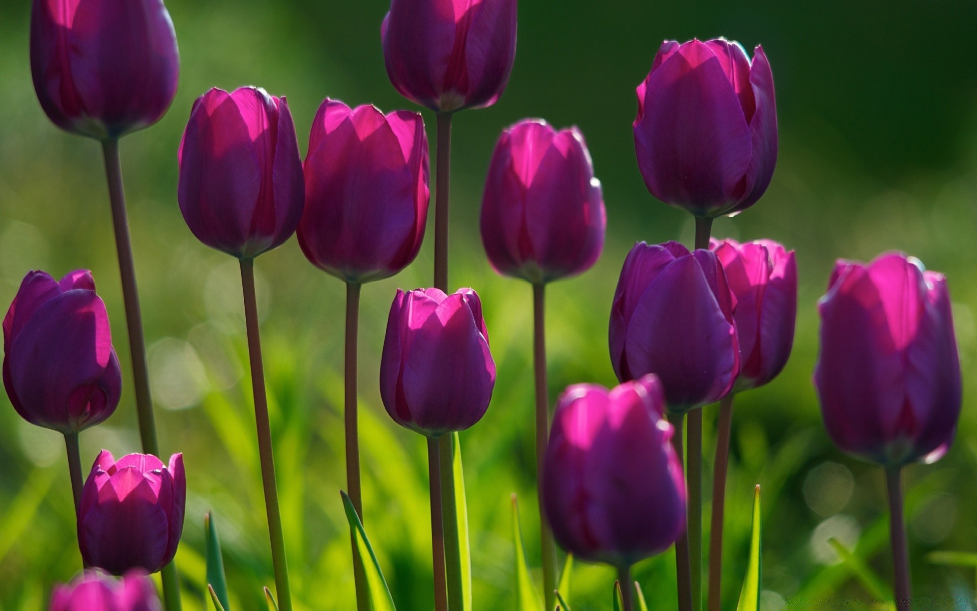 Çimlerin arka planına karşı menekşe laleler