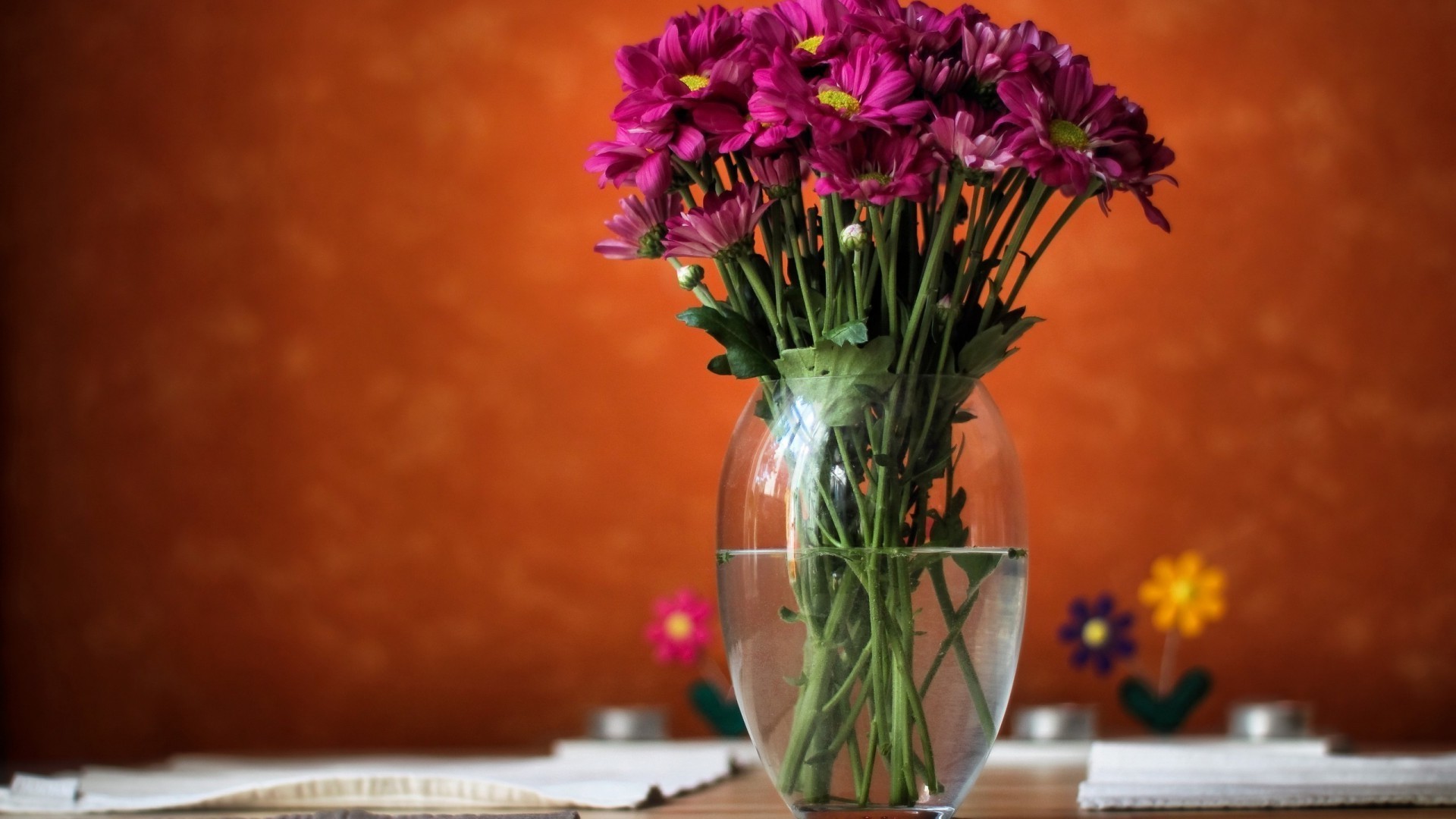 Masanın üzerindeki vazoda peygamber çiçeği çiçeği saksı