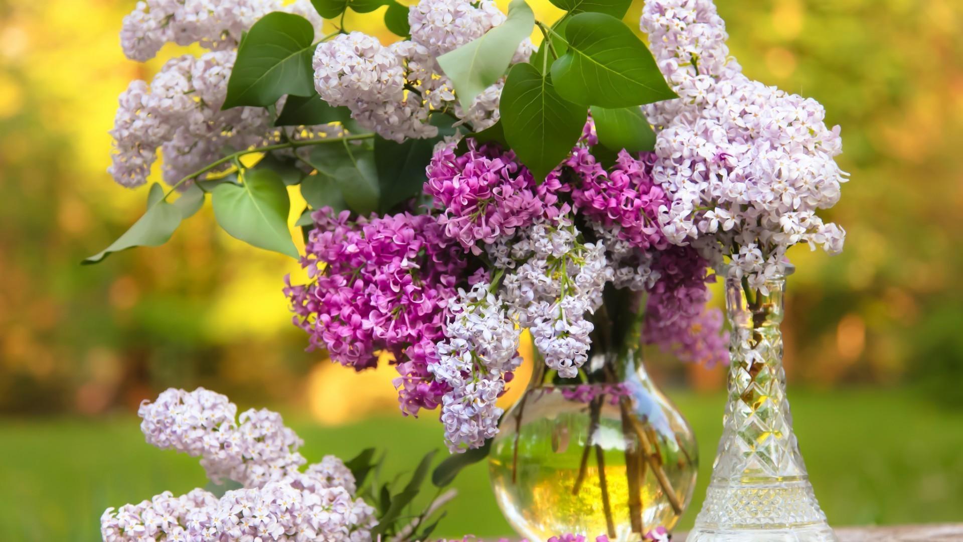 Çok renkli leylakların güzel bir buketi
