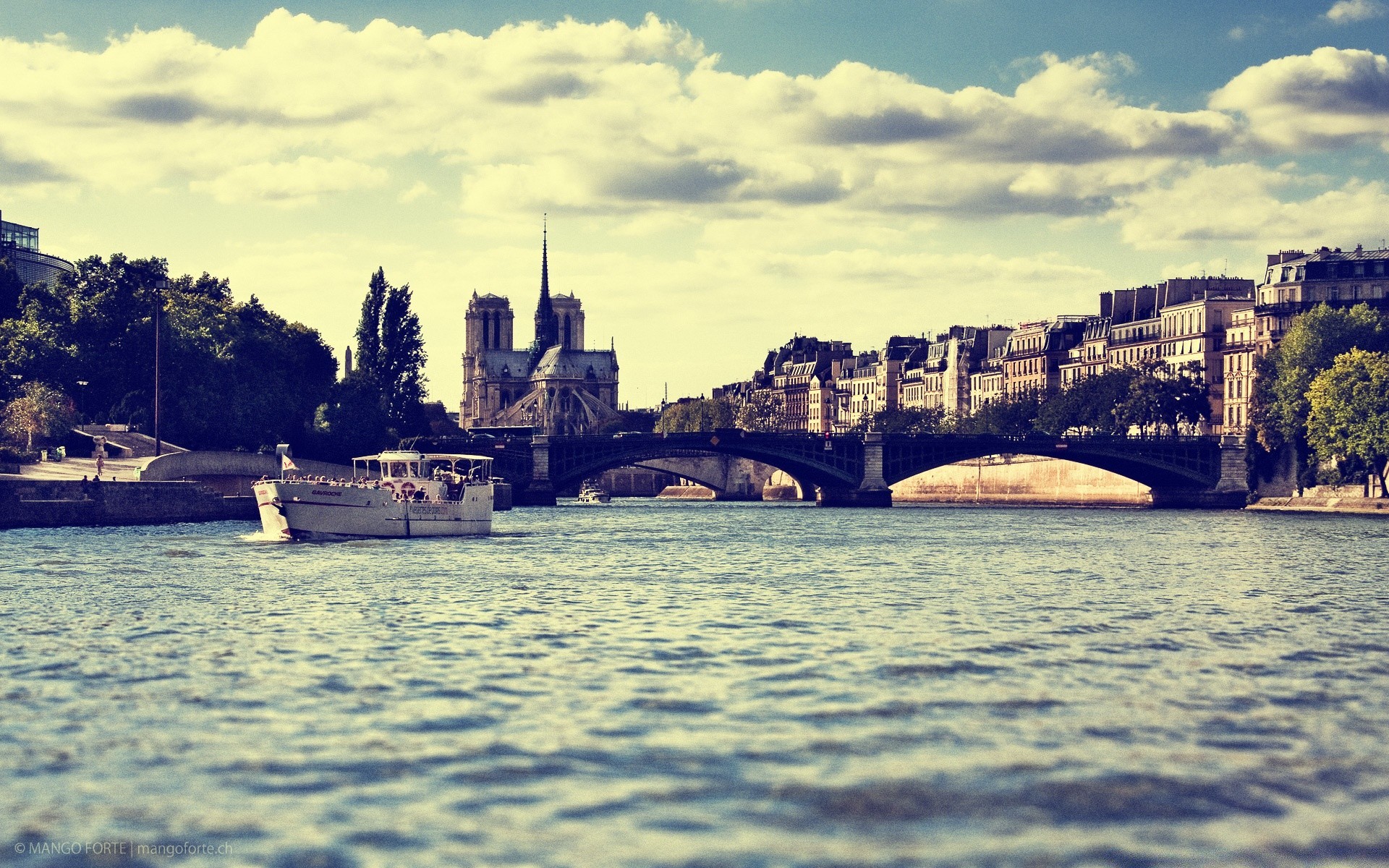 Şehrin ve nehrin vintage fotoğrafı