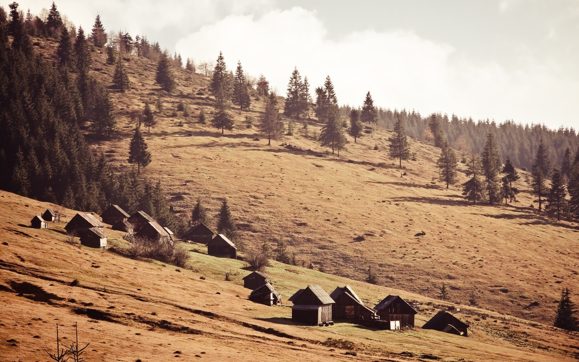 Yamaç altındaki dağlarda evler vintage