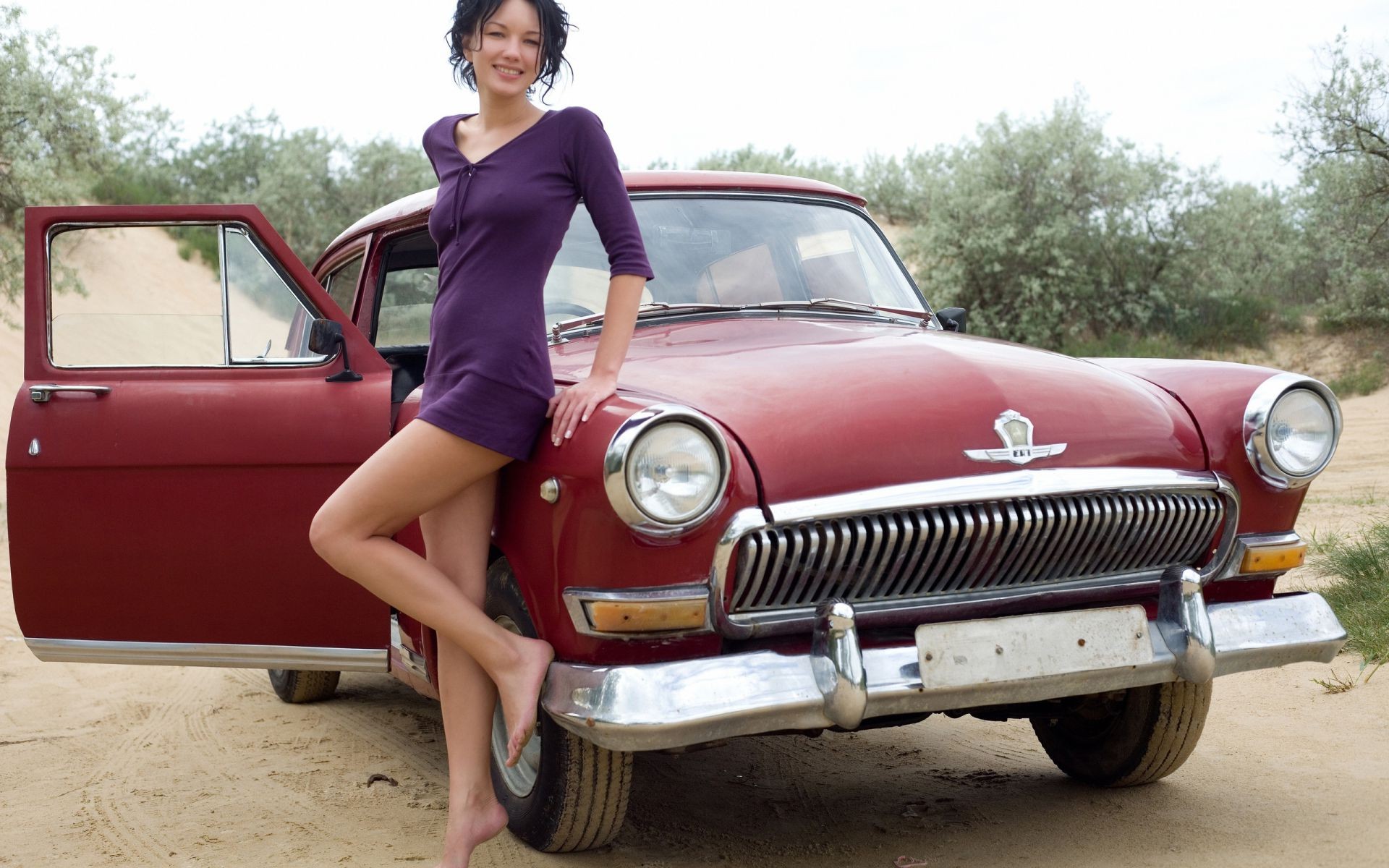 Kız ve vintage araba Volga