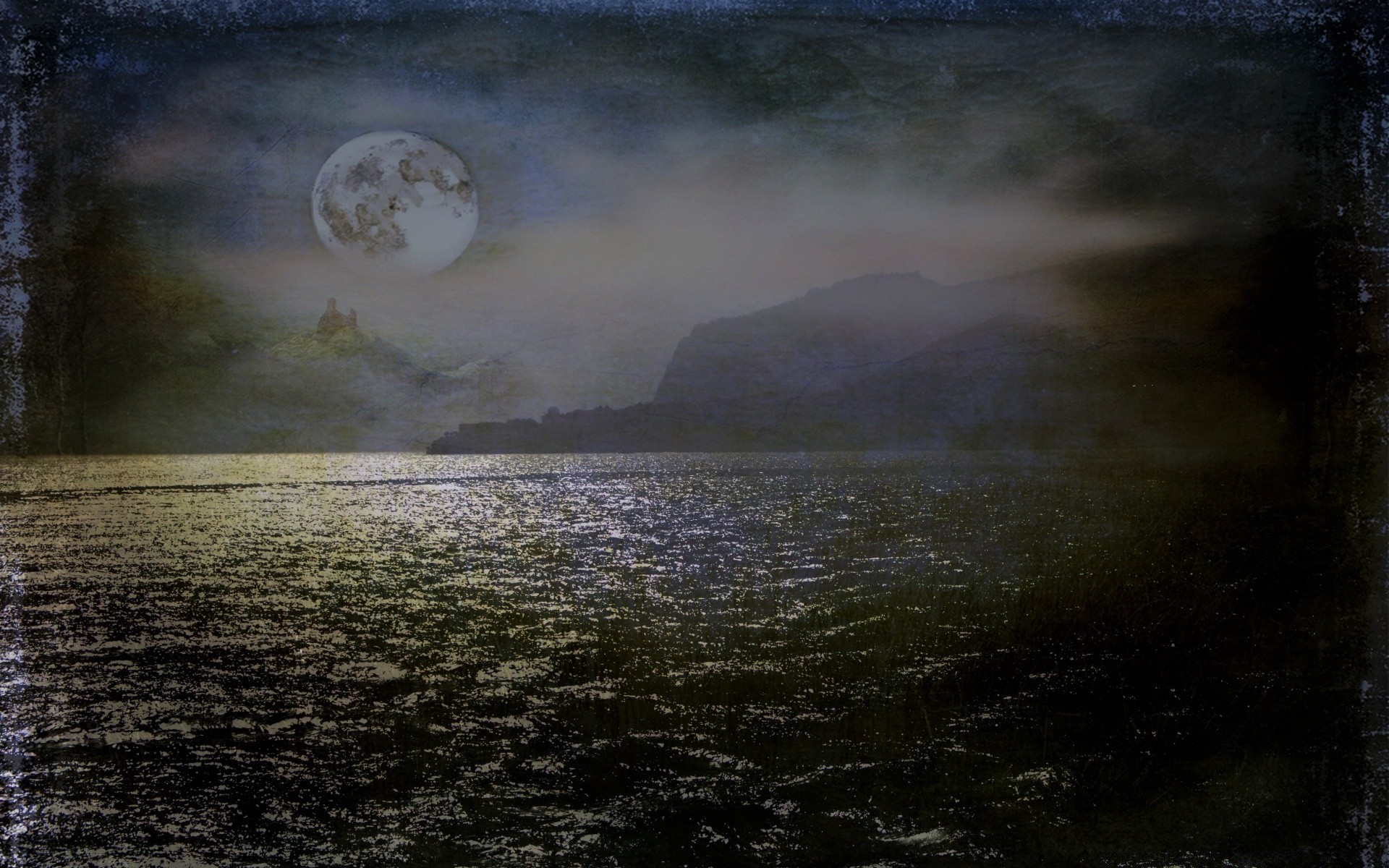 Ay ışığında göl, vintage fotoğraf