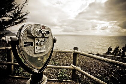 Çitin yanında dürbünlü denizin tek renkli fotoğrafıÇitin yanında dürbünlü denizin tek renkli fotoğrafı