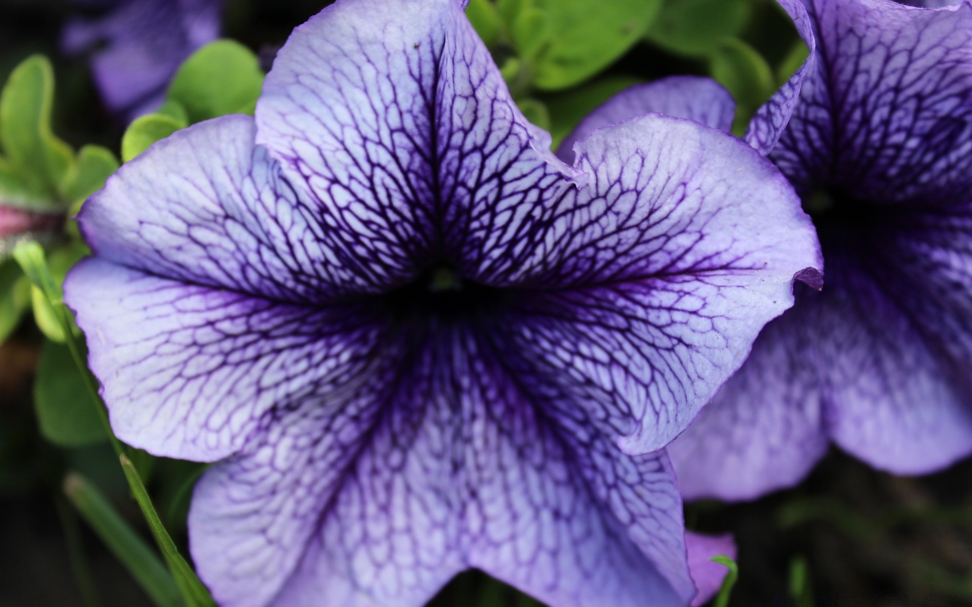 Yeşil bir arka plan üzerinde makrodaki menekşeler