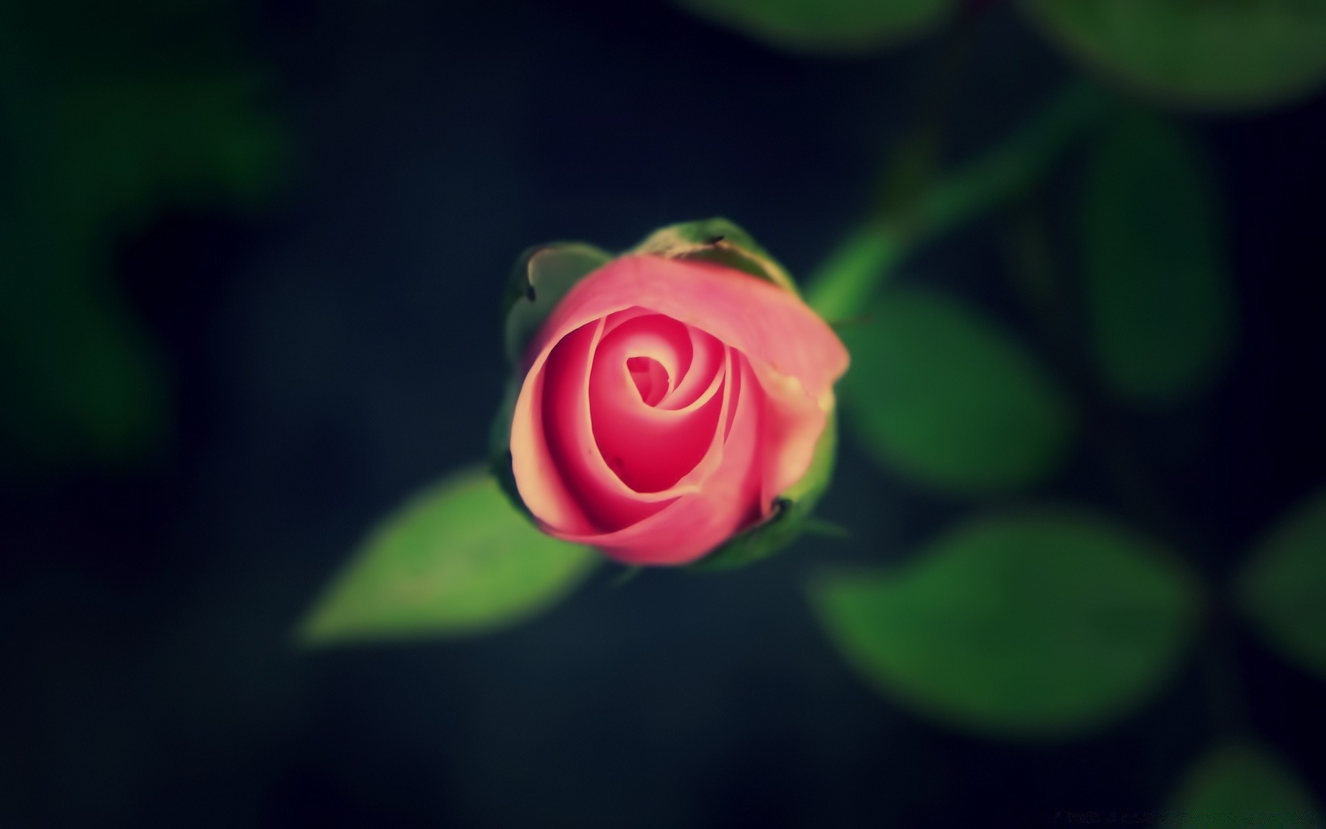 Bulanık yaprakların arka planında gül