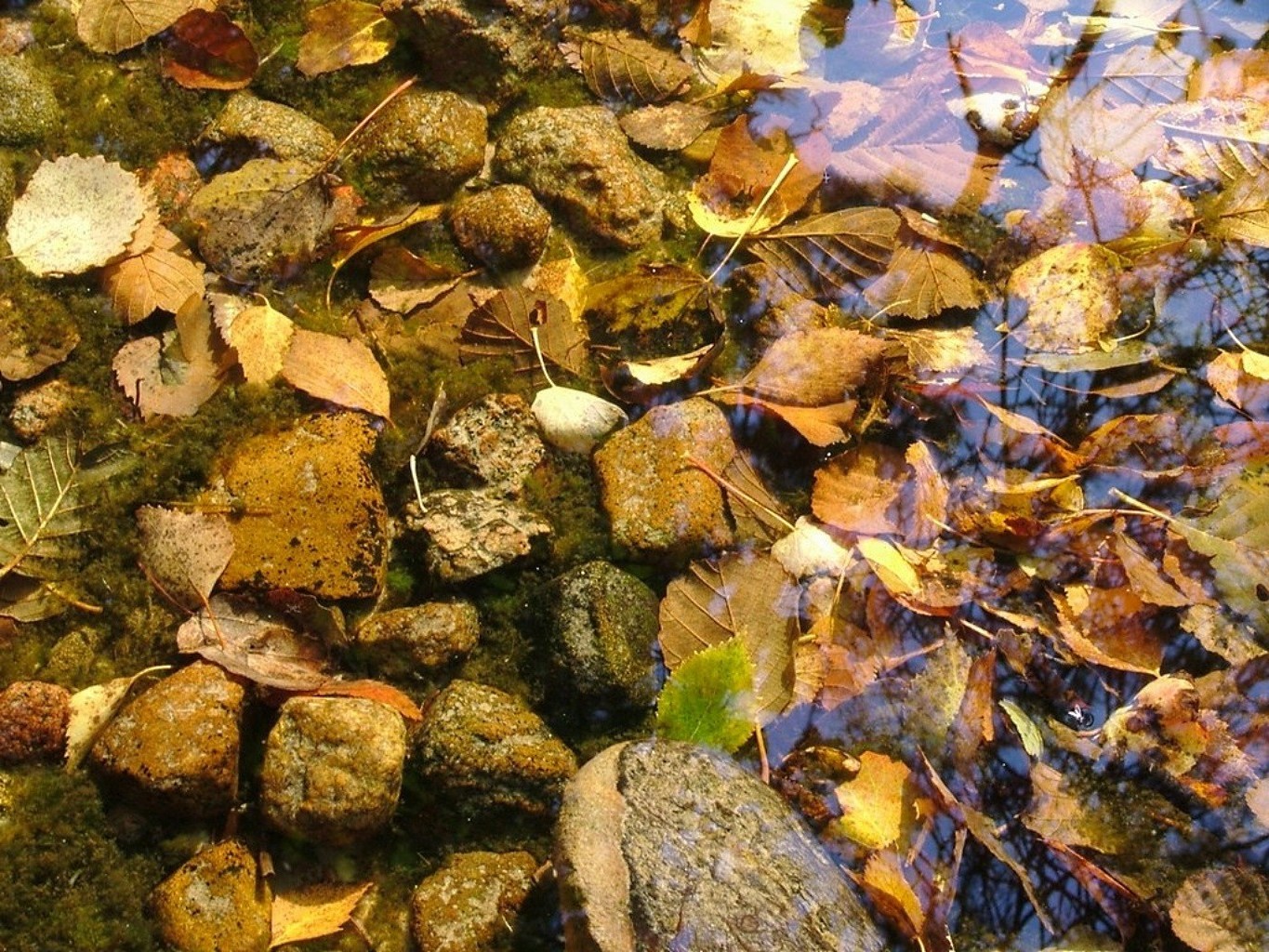Yağmur suyunda sonbahar yaprakları