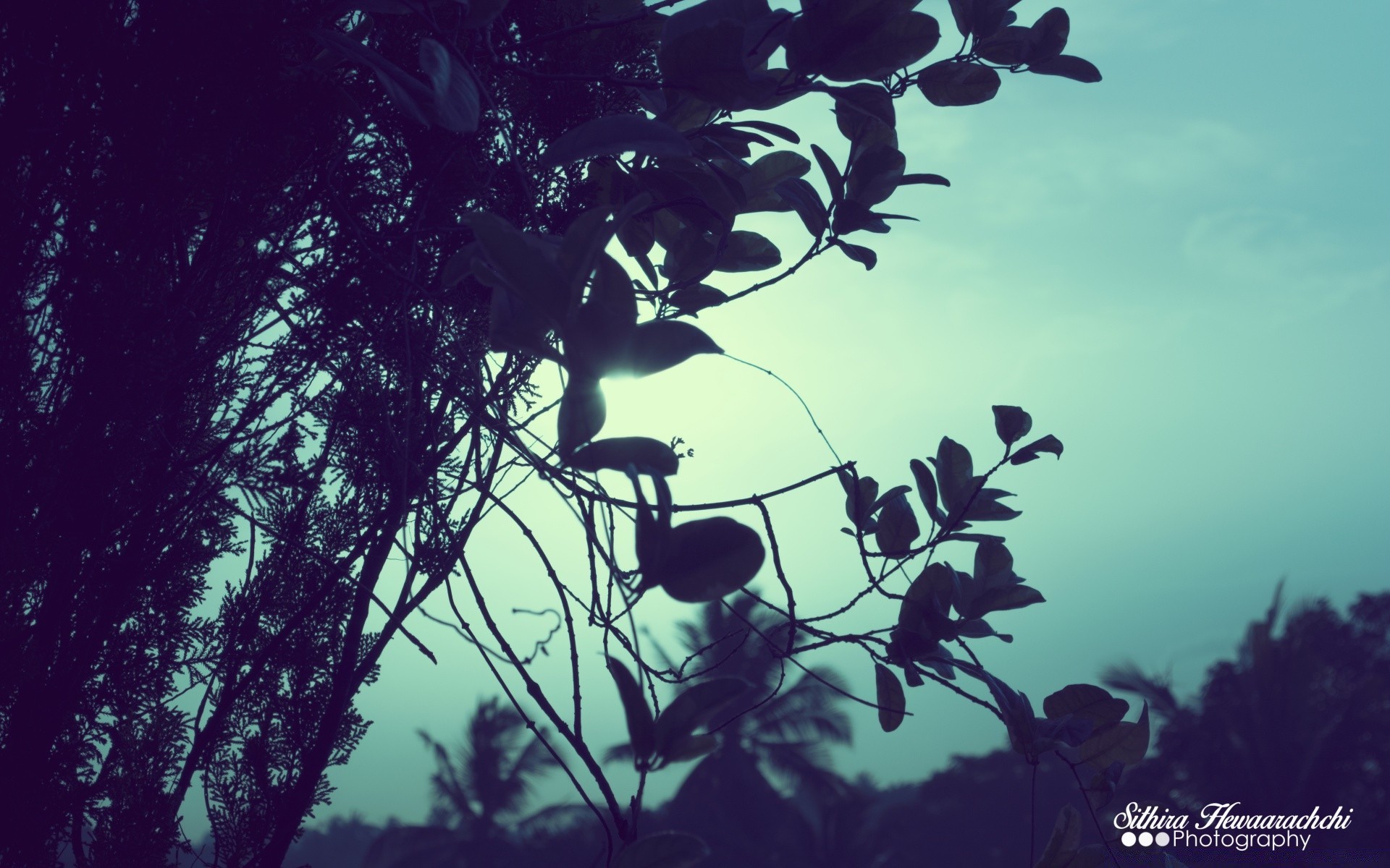 Bulanık bir doğa zeminine karşı ağacın yeşil yaprakları
