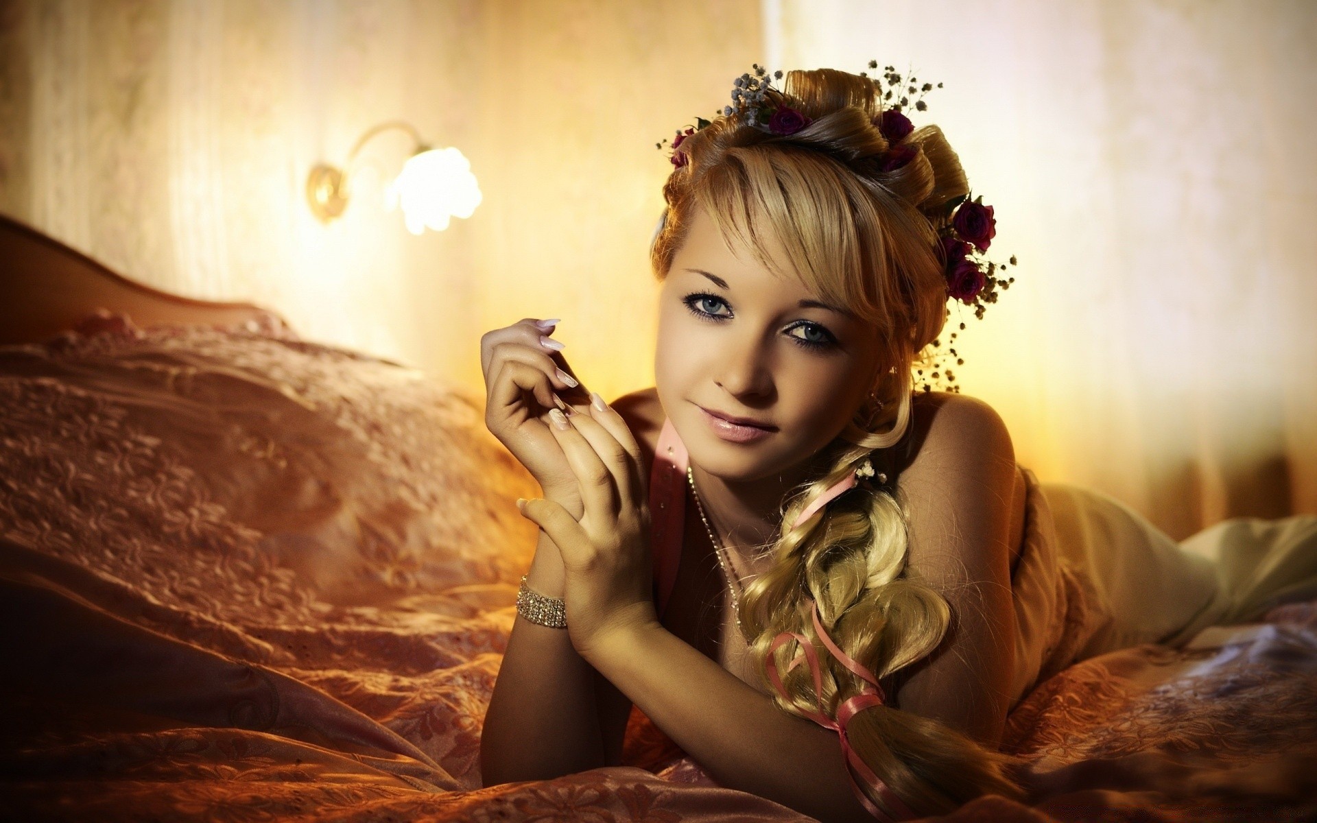 Güzel kız yatakta yatıyor