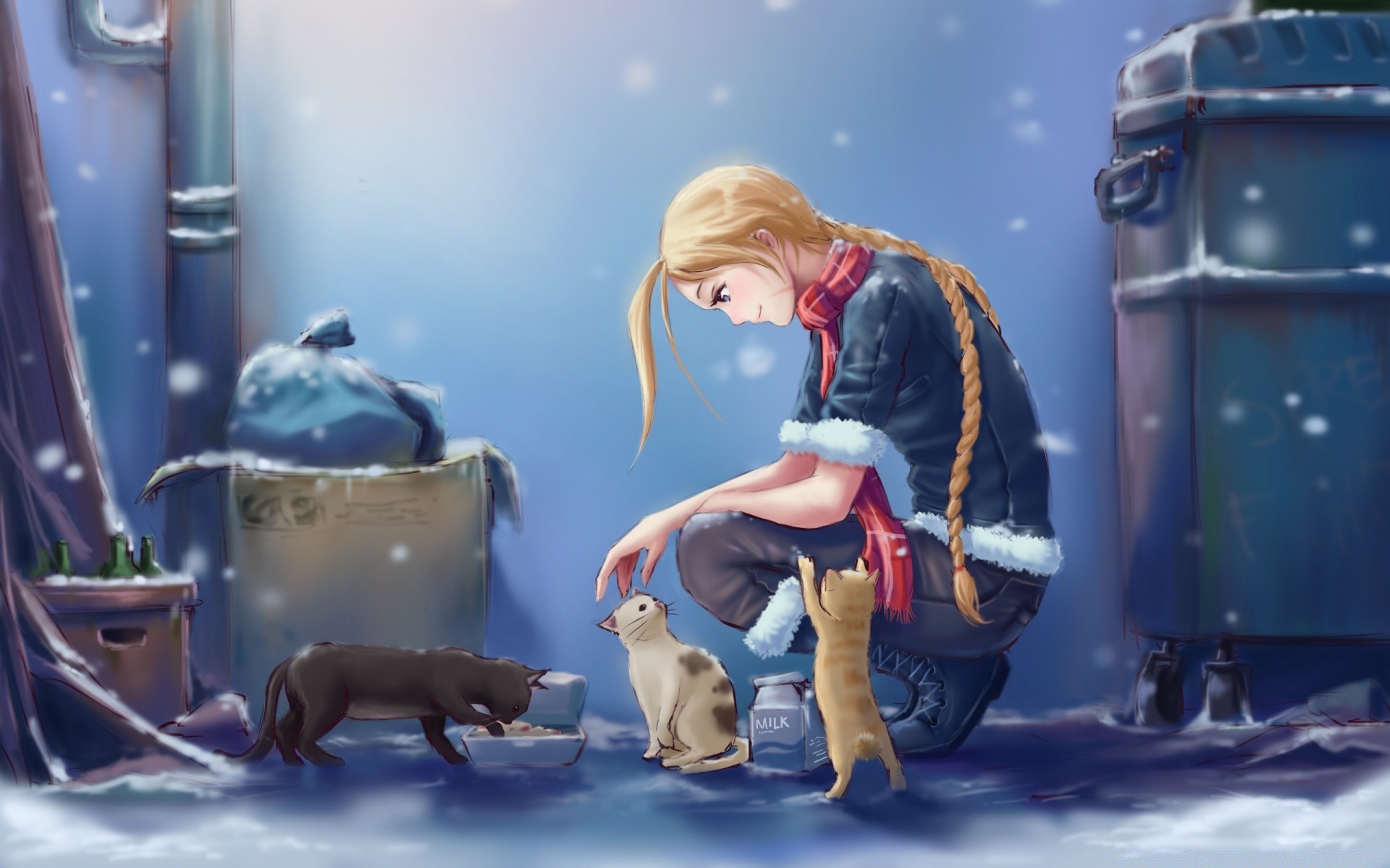 Küçük kızıl saçlı yavru kedi kırmızı tüylerde oturuyor