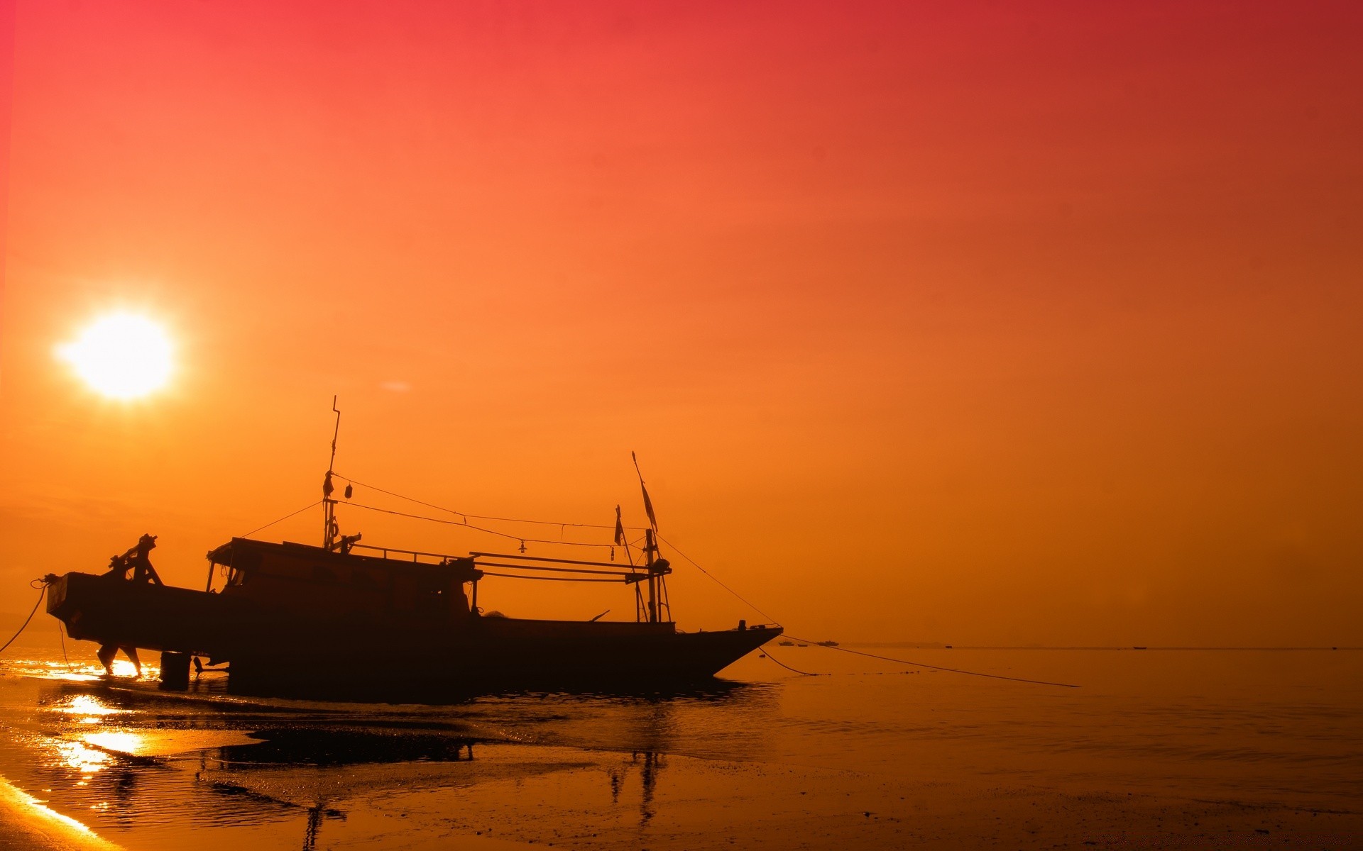 Geceleri fırtınanın altında denizde bir gemi yelken açıyor
