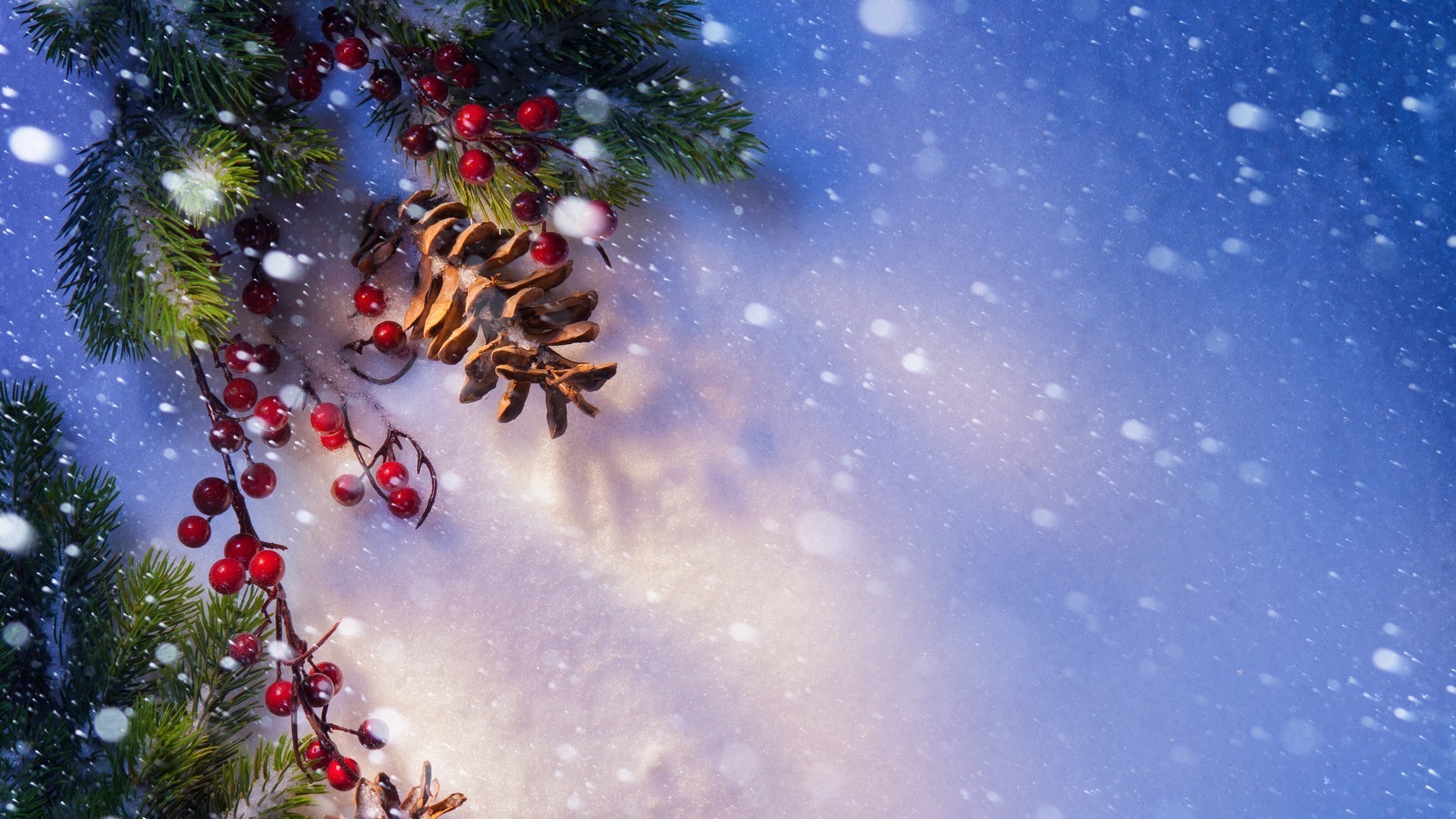 2016 yılı için Yeni Yıl duvar kağıdı. Köknar dalı, saat, Noel ağacı oyuncakları