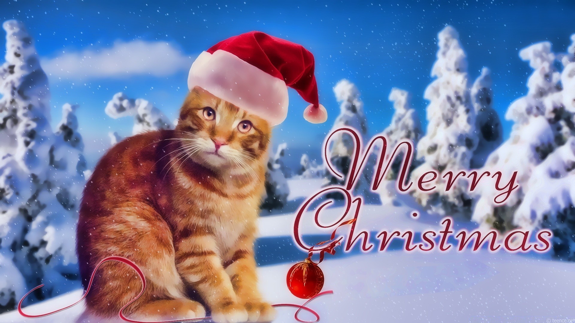 Kartpostaldaki Yeni Yıl kedisi