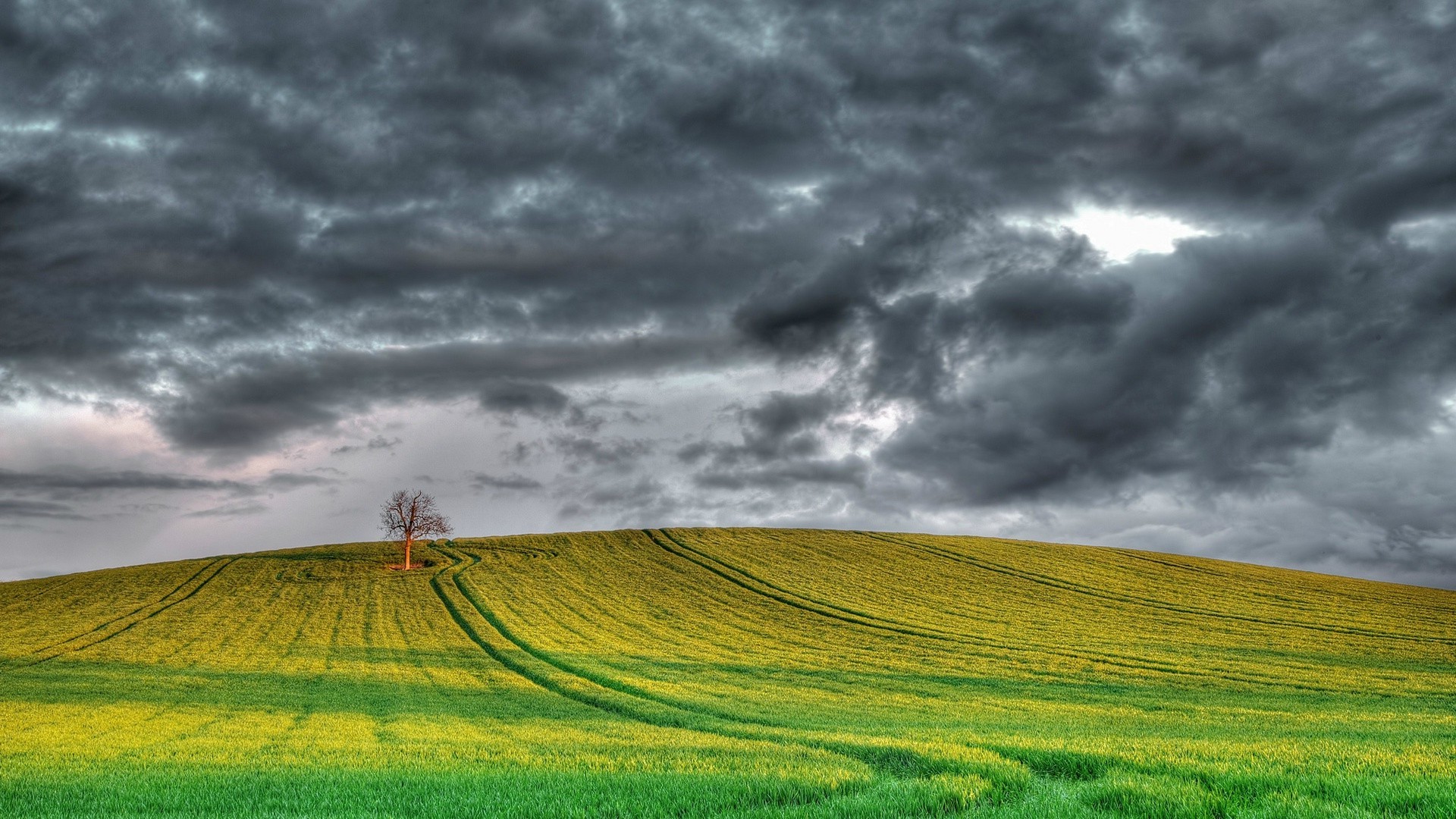 Karahindiba tarlada çiçek açtı. Mavi gökyüzü ve bulutlar.