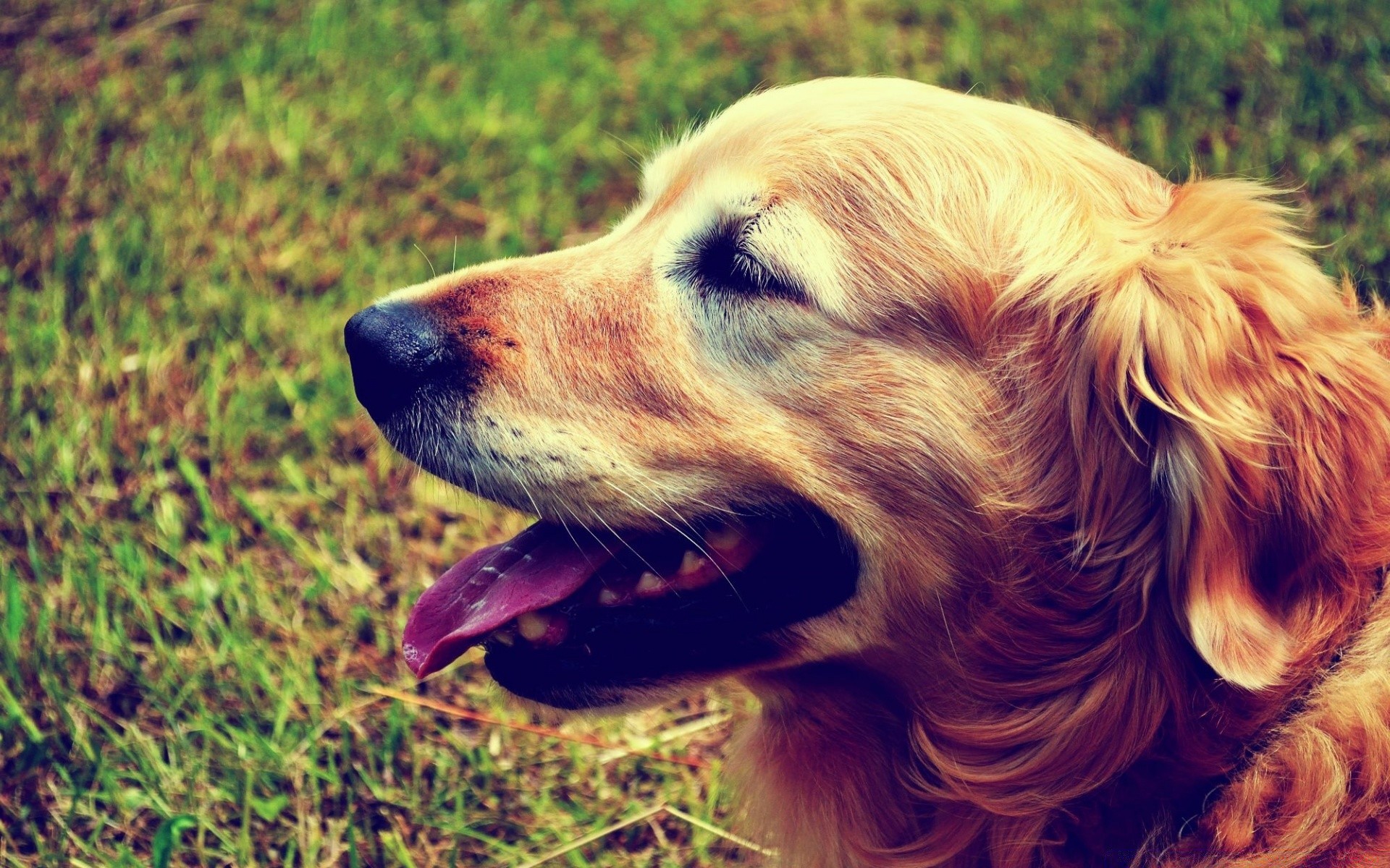 Beyaz köpek yeşil çimenlerin üzerinde yatıyor