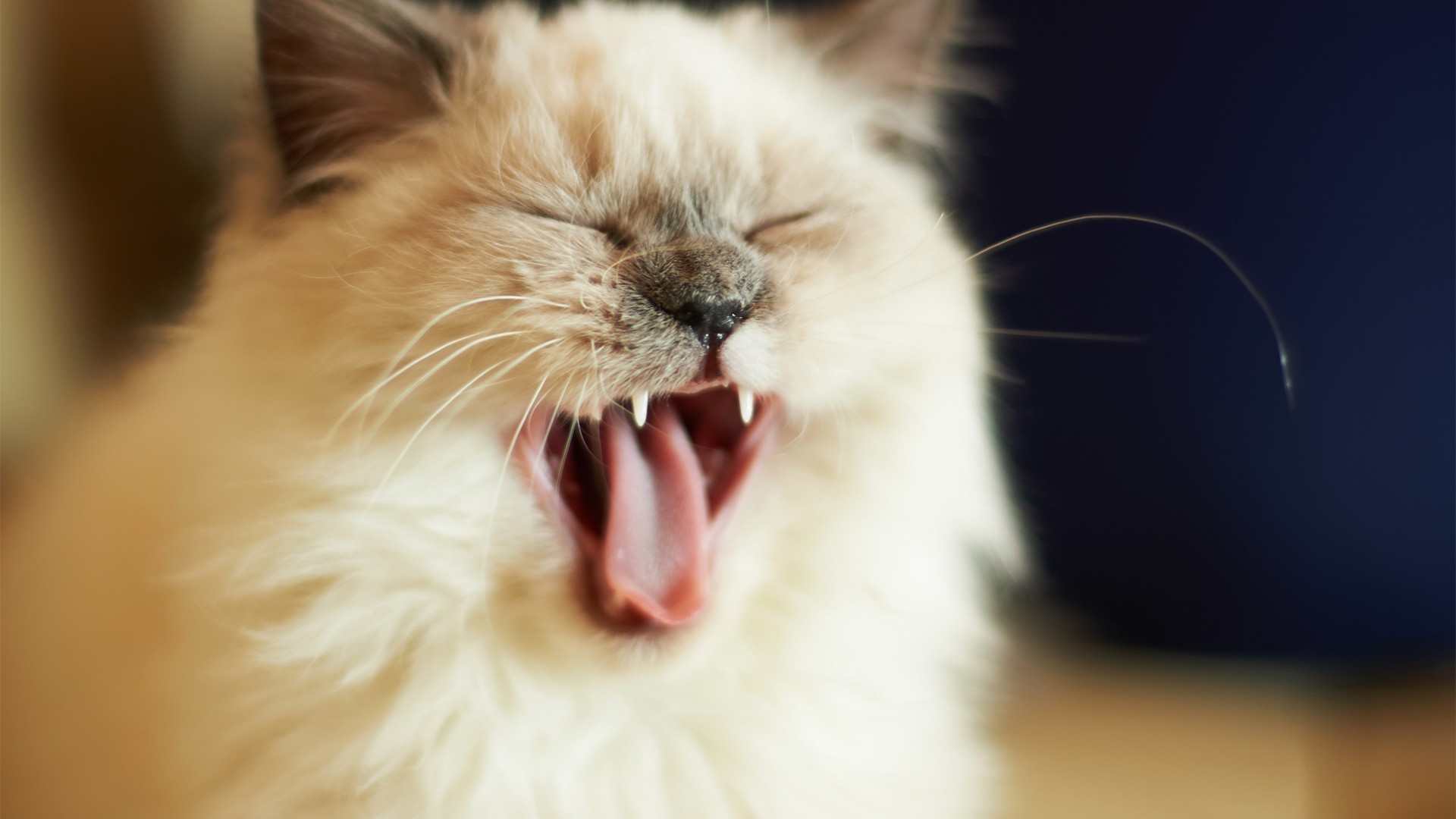 Güzel rengi olan kedi etkili bir şekilde esniyor